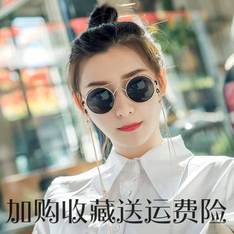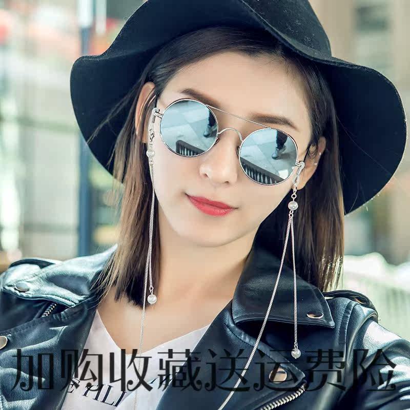 Korean version of fashion chain hanging neck woman sunglasses rope with anti-scratches Loli glasses ta retro craze ins nets red