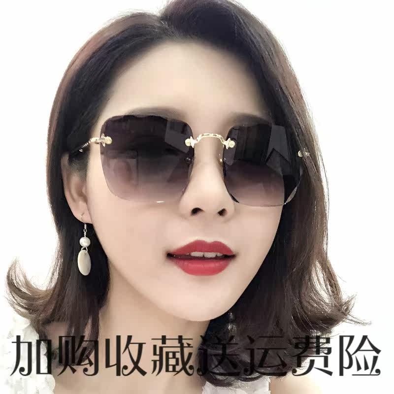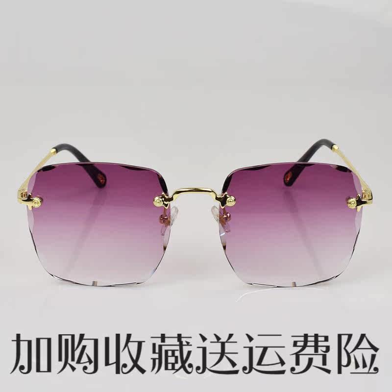 New no-frame square sunglasses woman round face starred ink glasses mirror woman big face square face elegant anti-purple