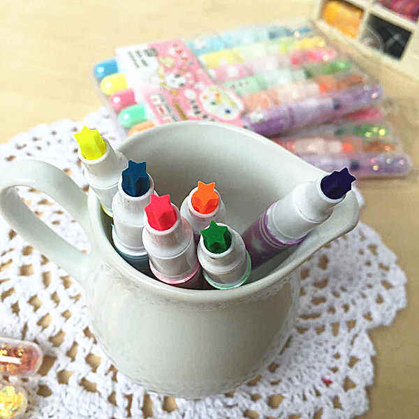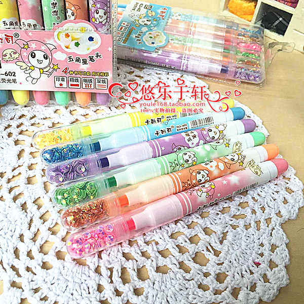 Candy-colored exotic highlighter pentagonal star head marker key marker watercolor pen 6-color multi-purpose