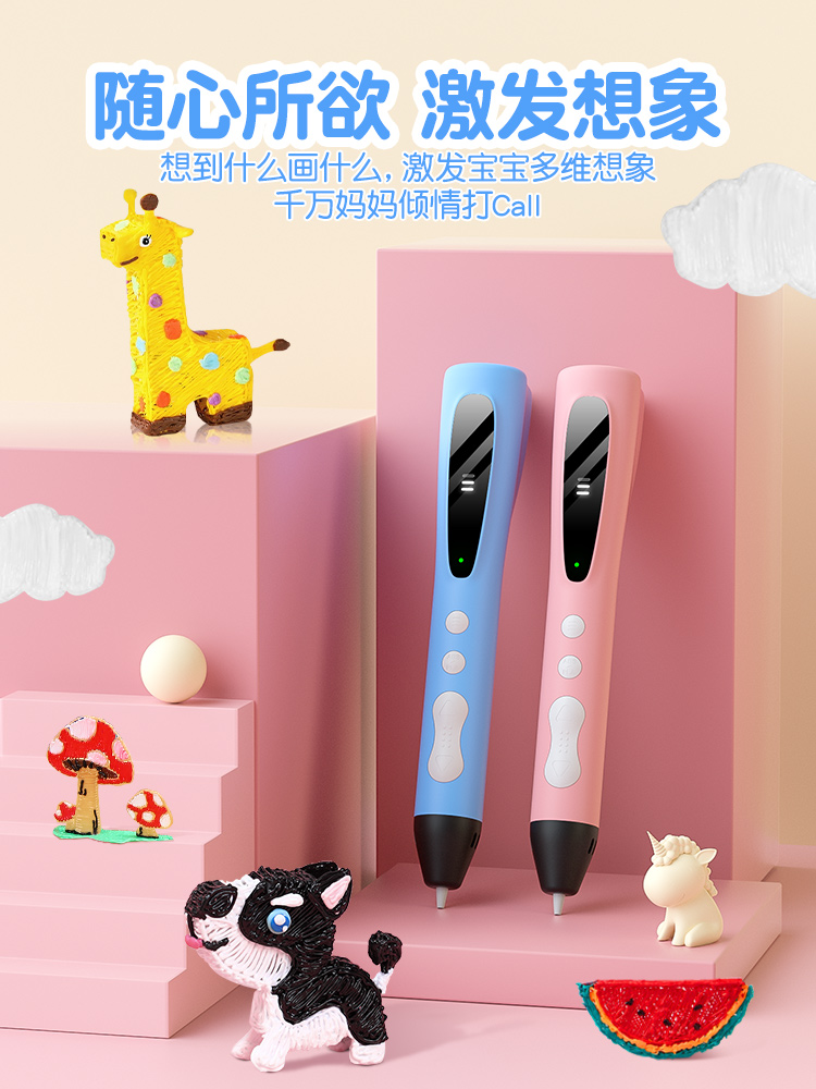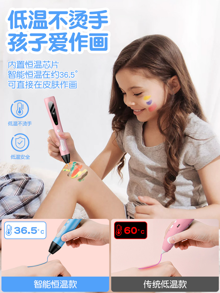 (Smart low temperature) 3D printing pen children's stereoscopic painting three d magic pen Xiao Ma Liang girl 3 full set of magic vibrato net red 3b automatic physical multi-functional mouth magic 4d painting is not hot