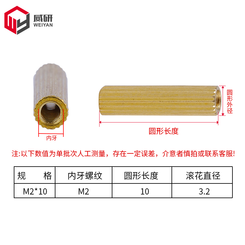 Double-pass circular knurled copper column security monitoring copper column camera screw column round stud copper stud M2
