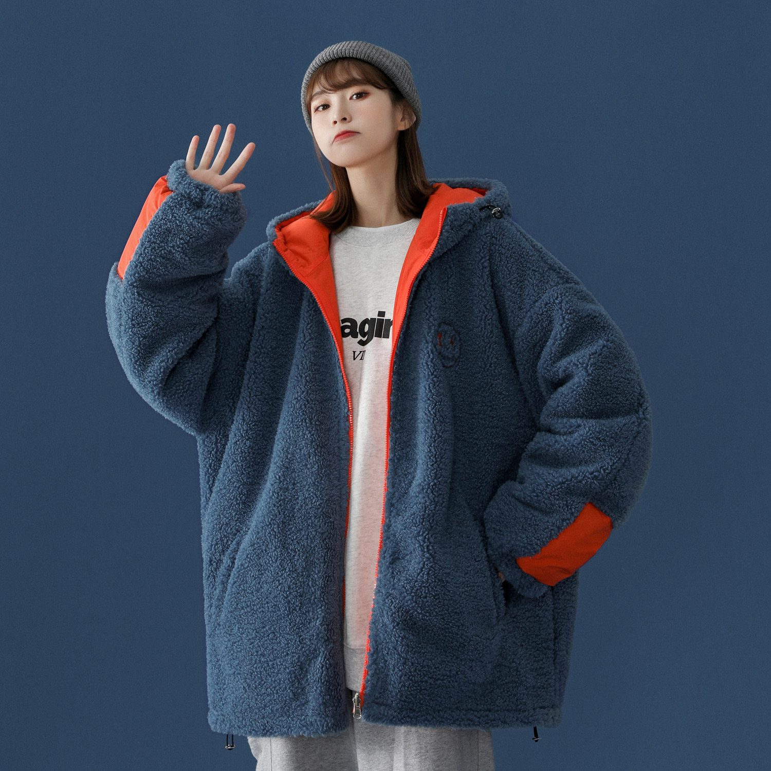 Large size plus velvet thickened lamb coat women 2021 New chic port flavor fat mm design cotton-padded clothing
