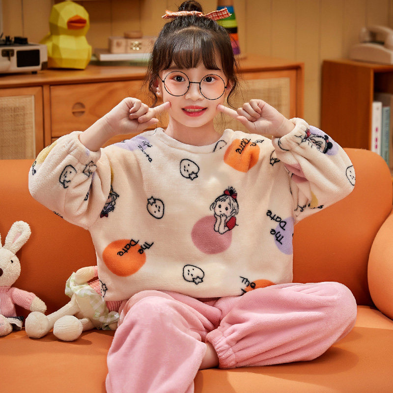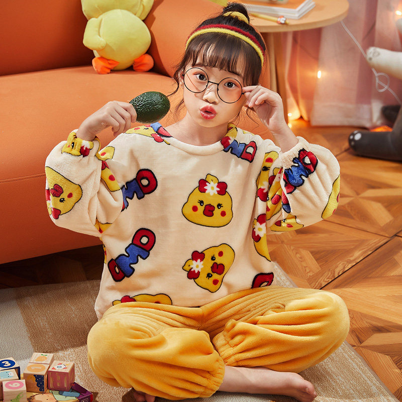Winter children's pajamas for little girls thickened and velvet coral velvet autumn and winter models in big children's home clothes girls flannel
