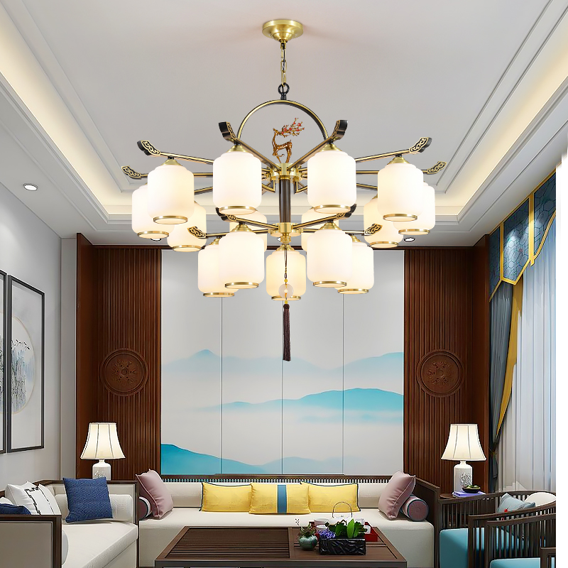 New Chinese ceiling lamp All copper living room lamp Chinese style Zen Yi home atmospheric villa restaurant bedroom LED lamp