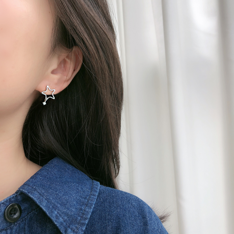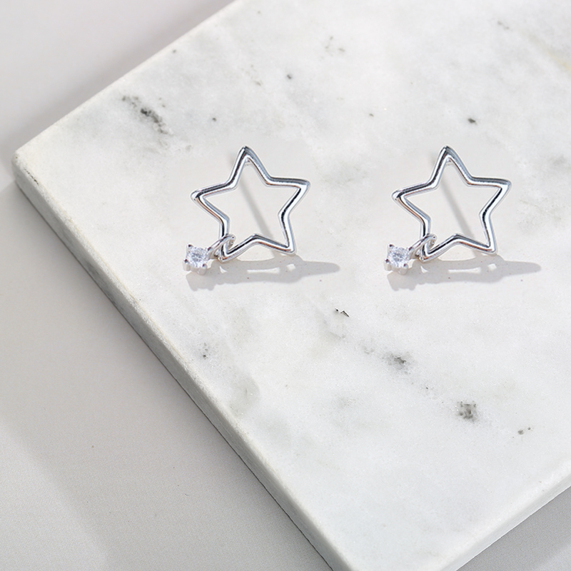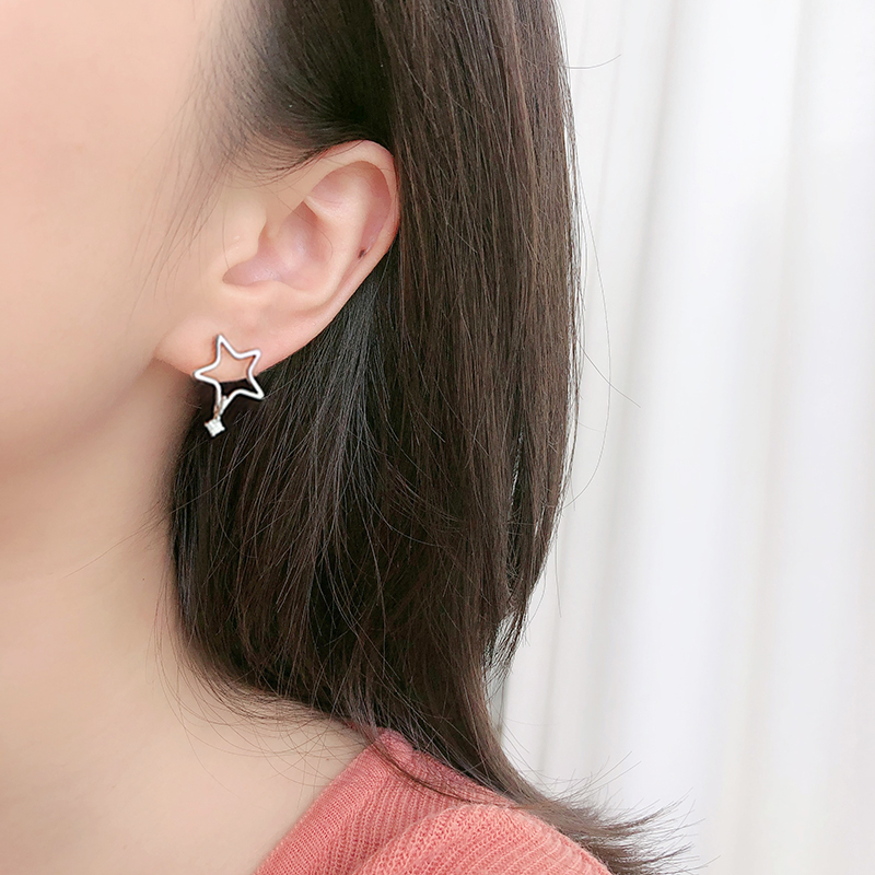 The star ear hollowed pentagon zircon ear crash of the 925 silver moving star ear - pin 20 models