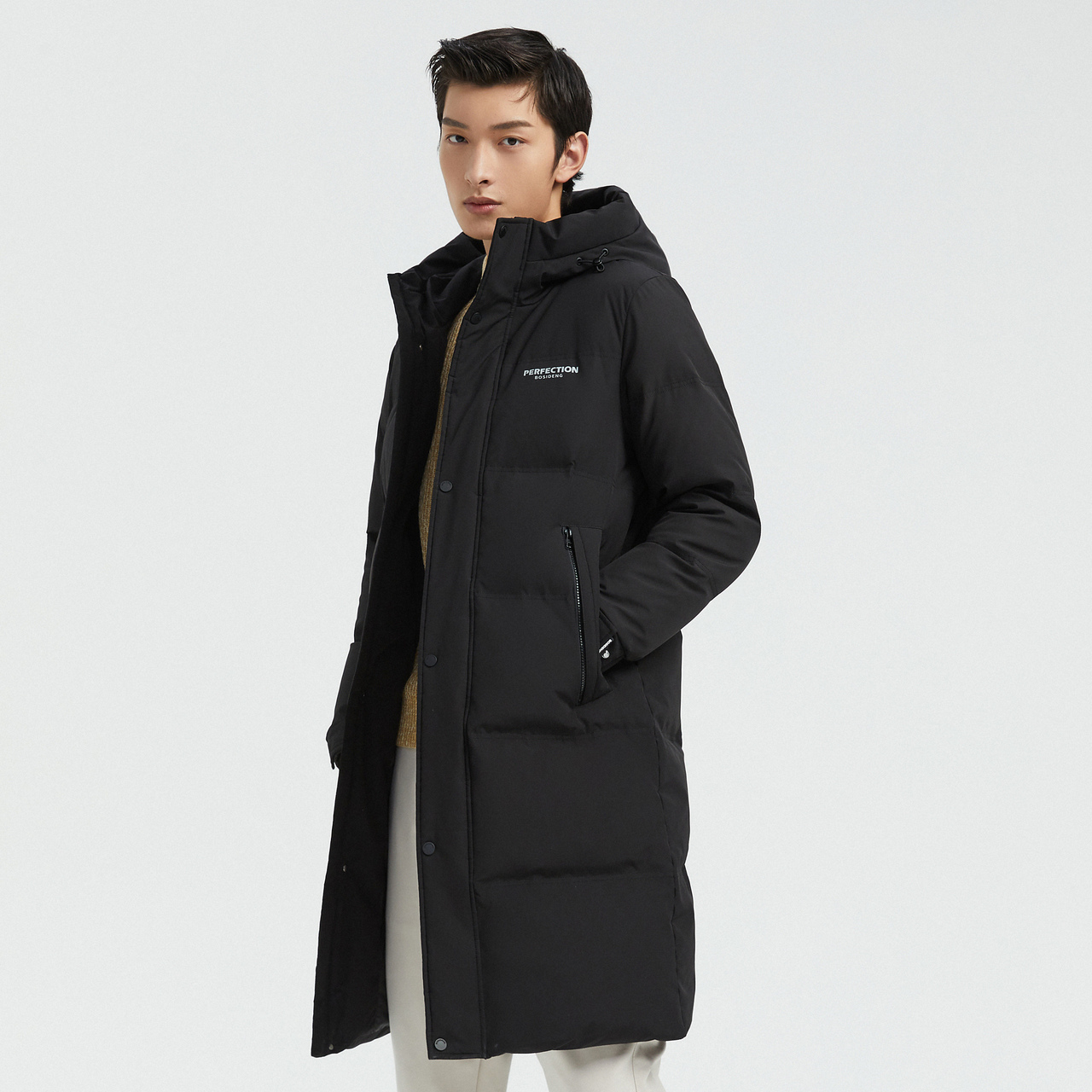 Bosideng Down Jacket Men's Over-the-Knee Long Version=Casual Hooded Warm Grass-Style Classic Calm Winter Jacket
