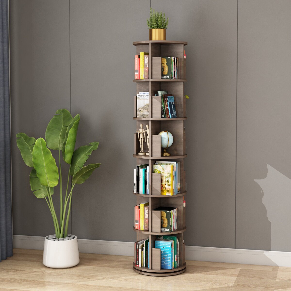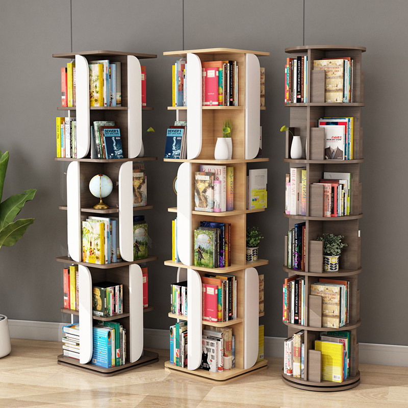 Rotary bookshelf 360 degree bookcase Solid wood small floor-to-ceiling children's picture book shelf Living room large capacity corner shelf