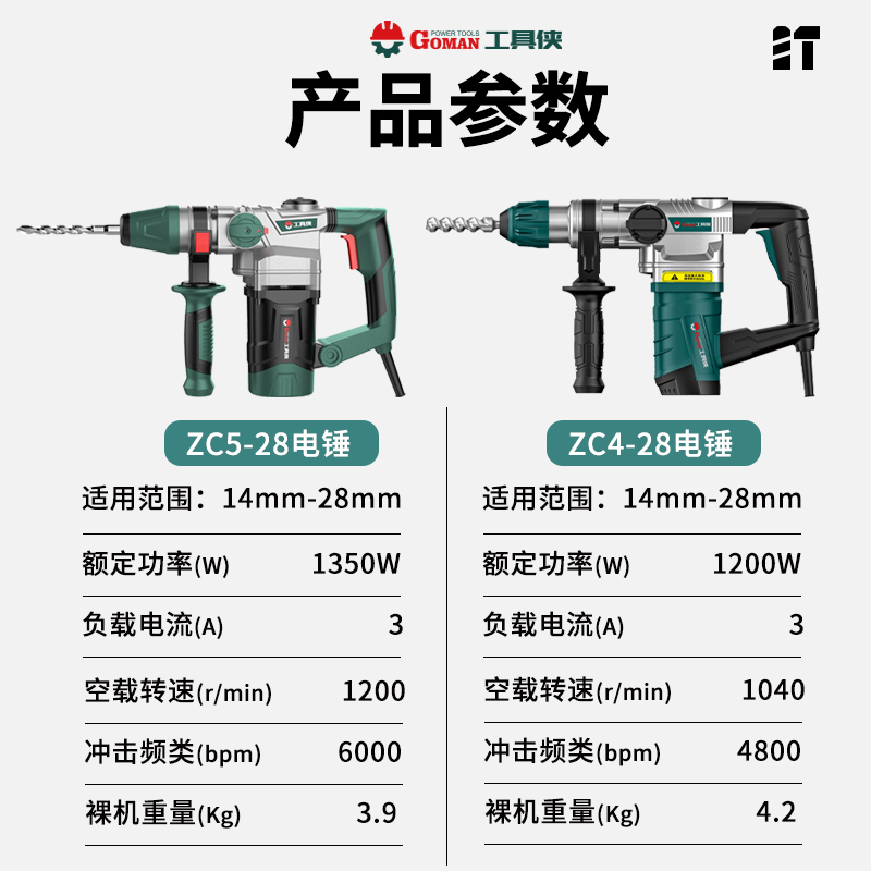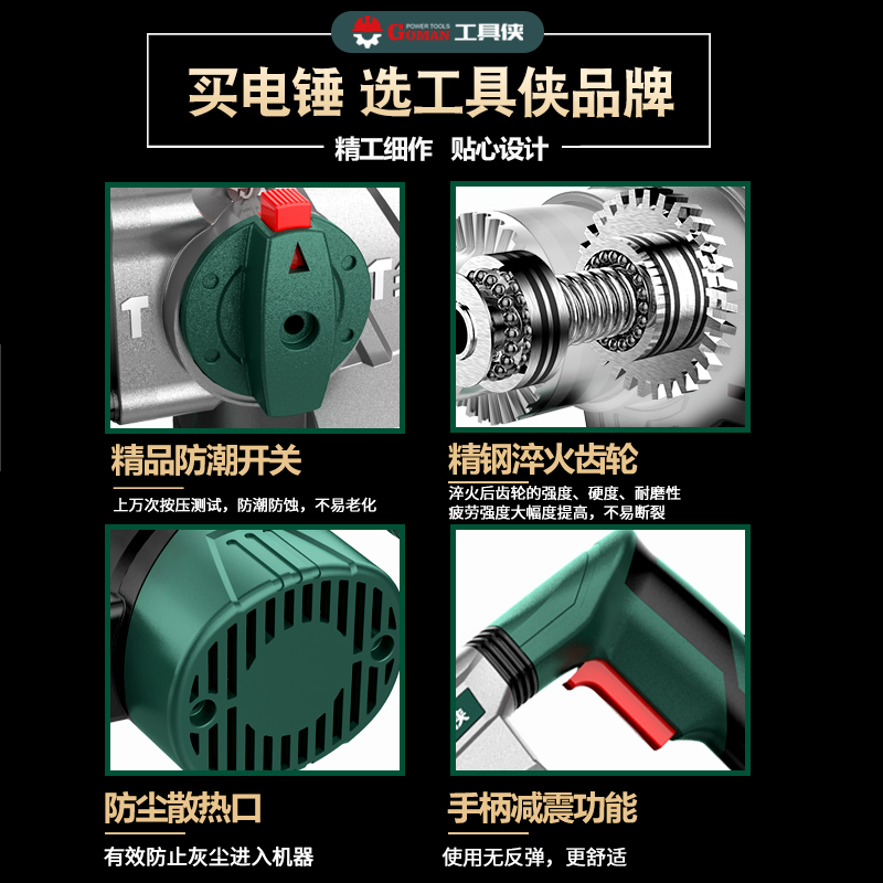 Tool Man Electric Hammer Electric Hack Pick Multi-function High Power Impact Drilling Concrete Industrial Heavy Duty Electric Back Drill Electric Drill