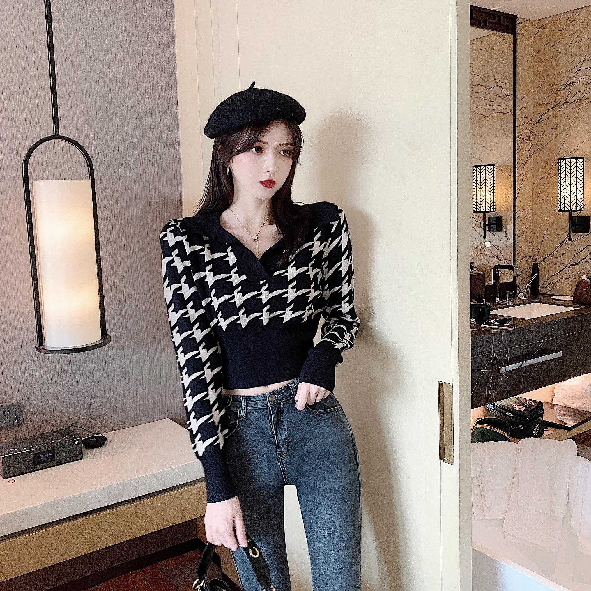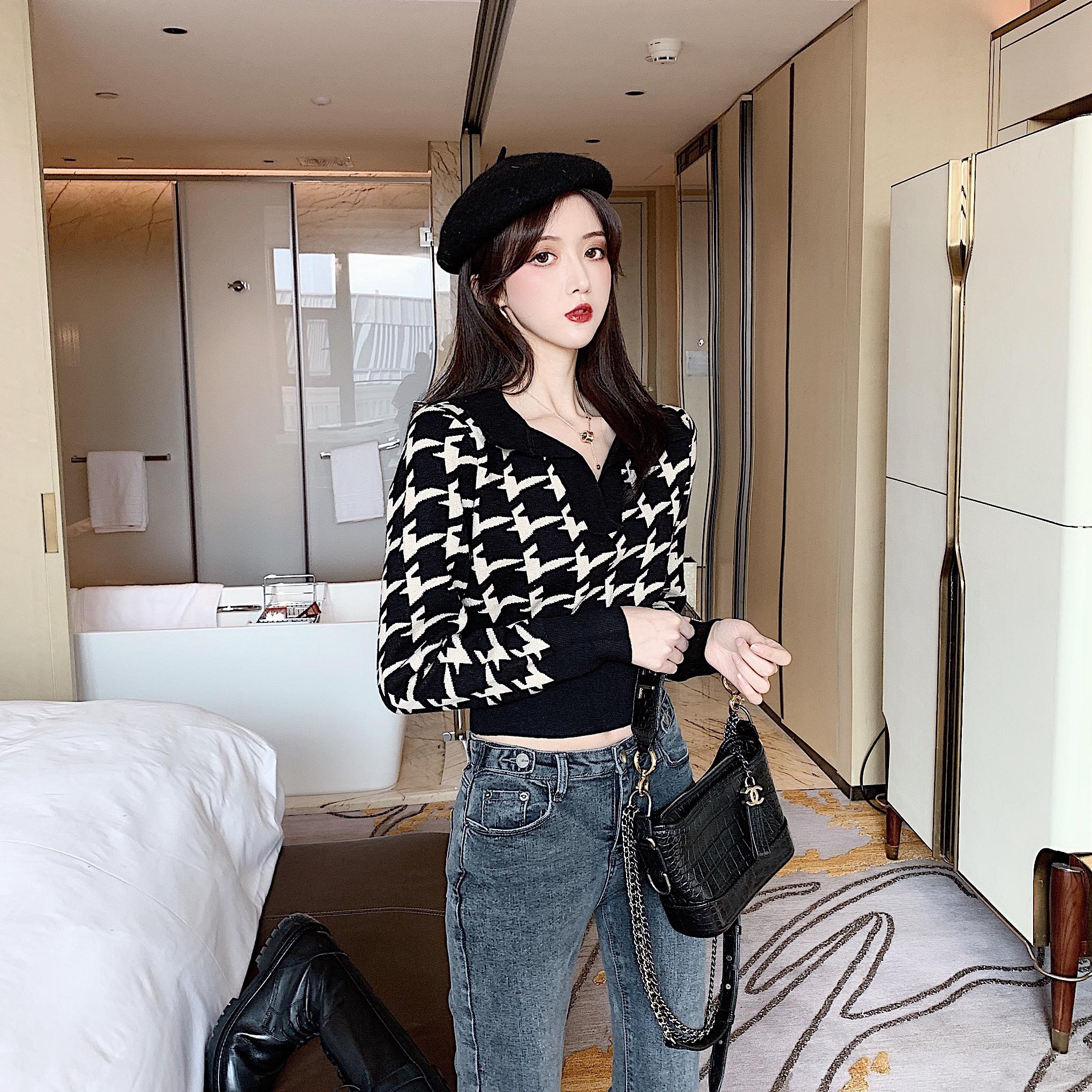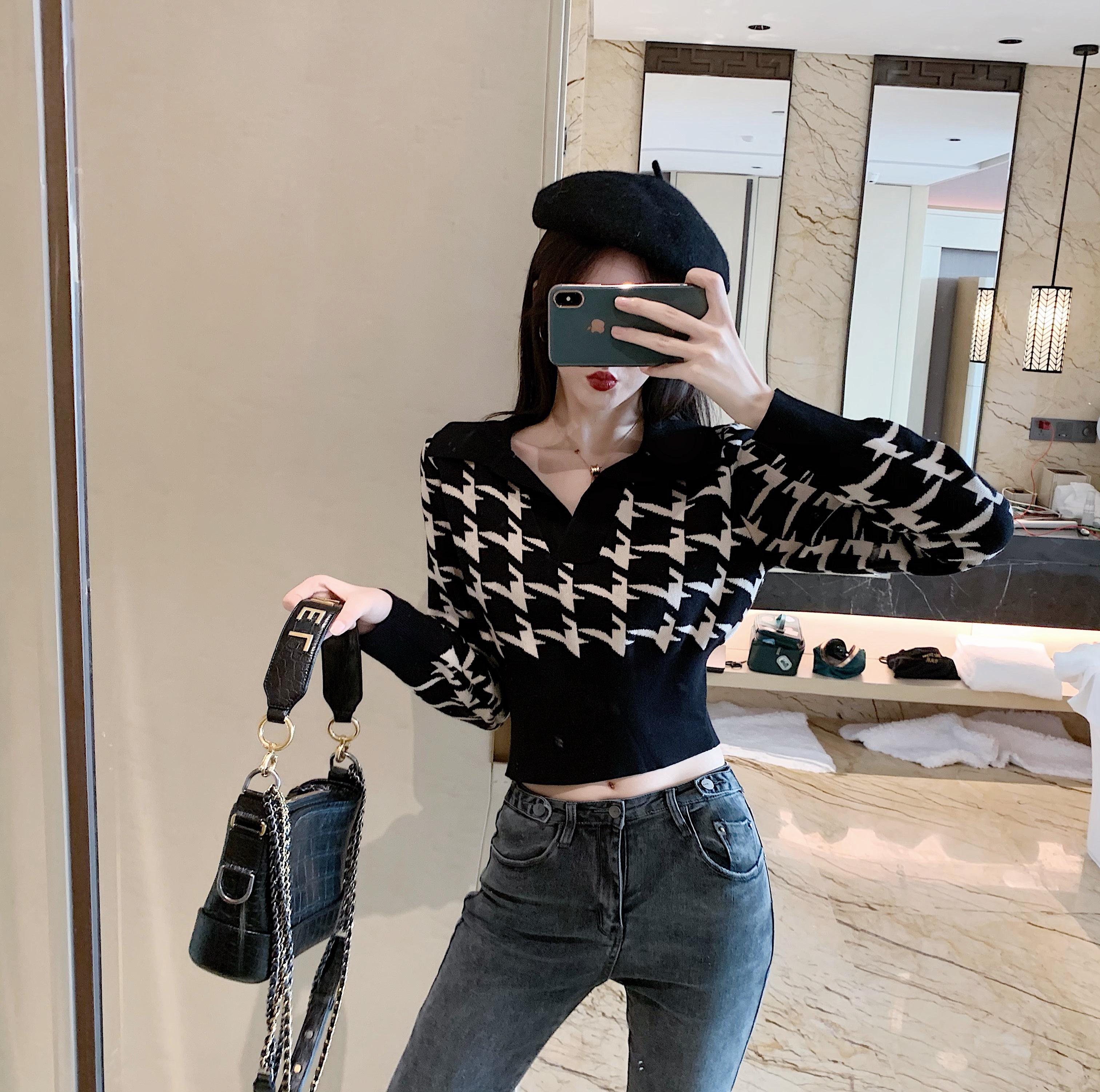 2020 autumn and winter new caution V - collar knitting jersey wear a short cloth cloth and slim coat