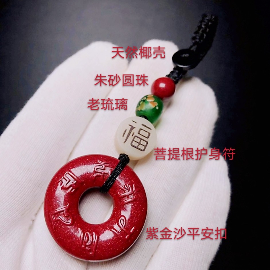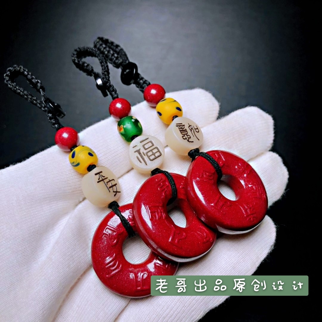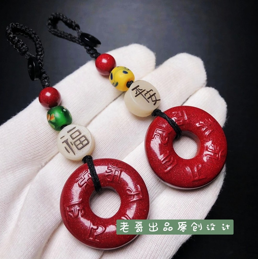 Older brother Original upscale Sand Safe Button car Key buckle hanging decoration old glazed six characters True words men and women's pendants