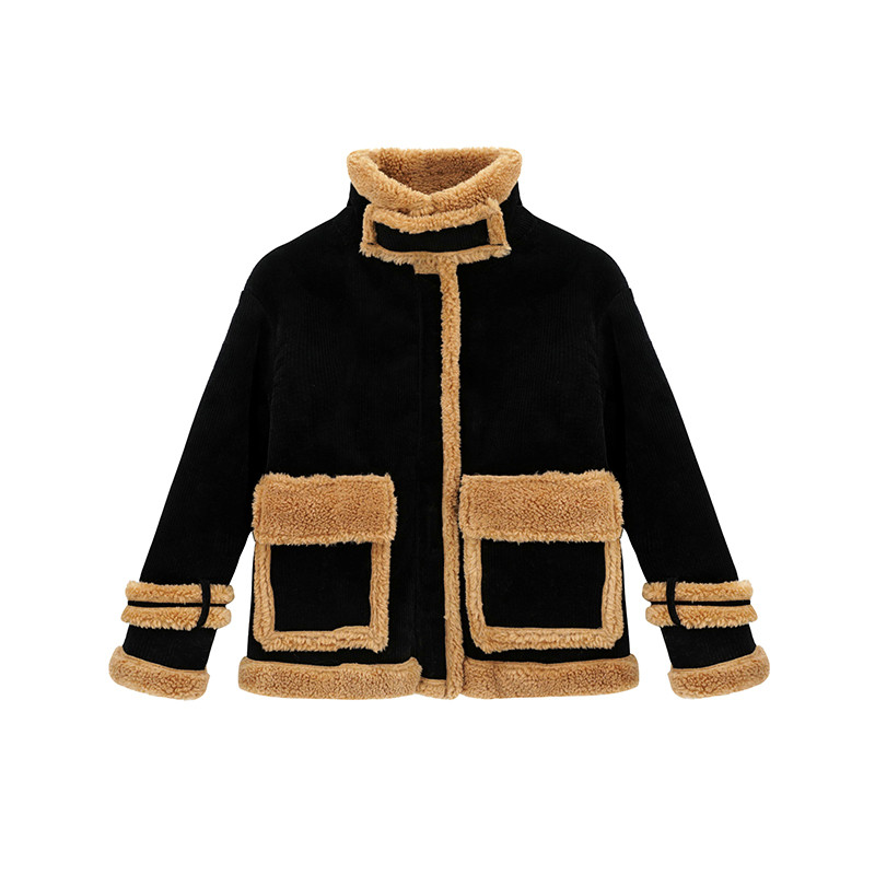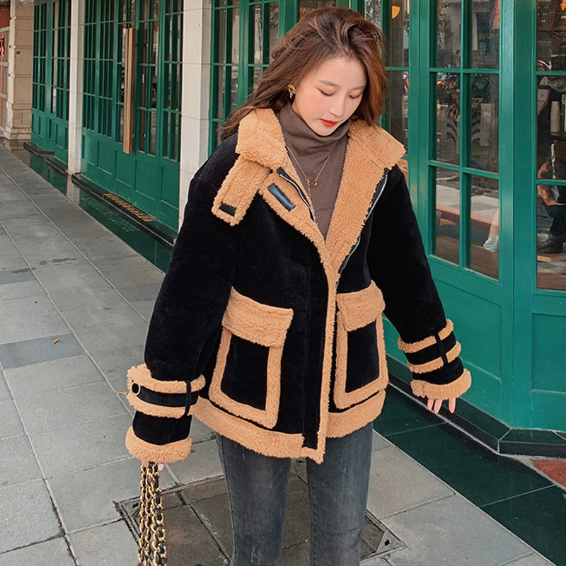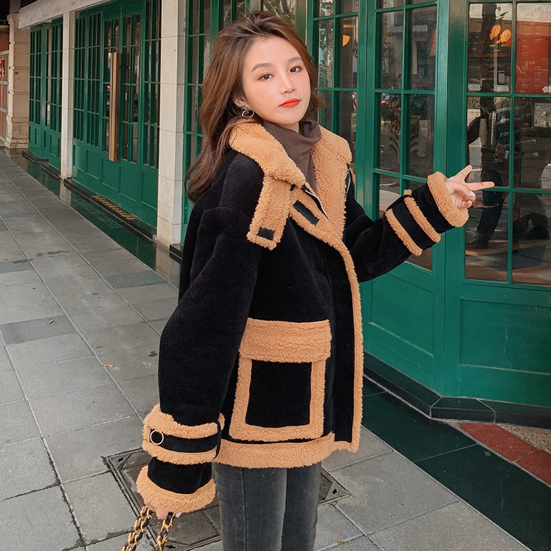 celine pianna lamb wool coat women's winter new Korean style stitching corduroy thickened short coat