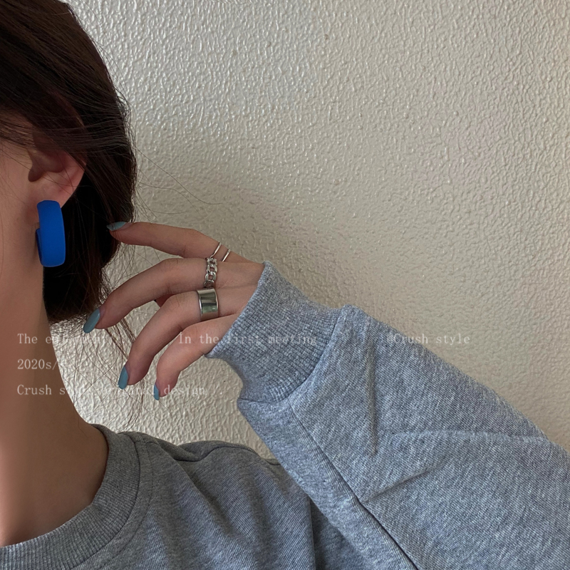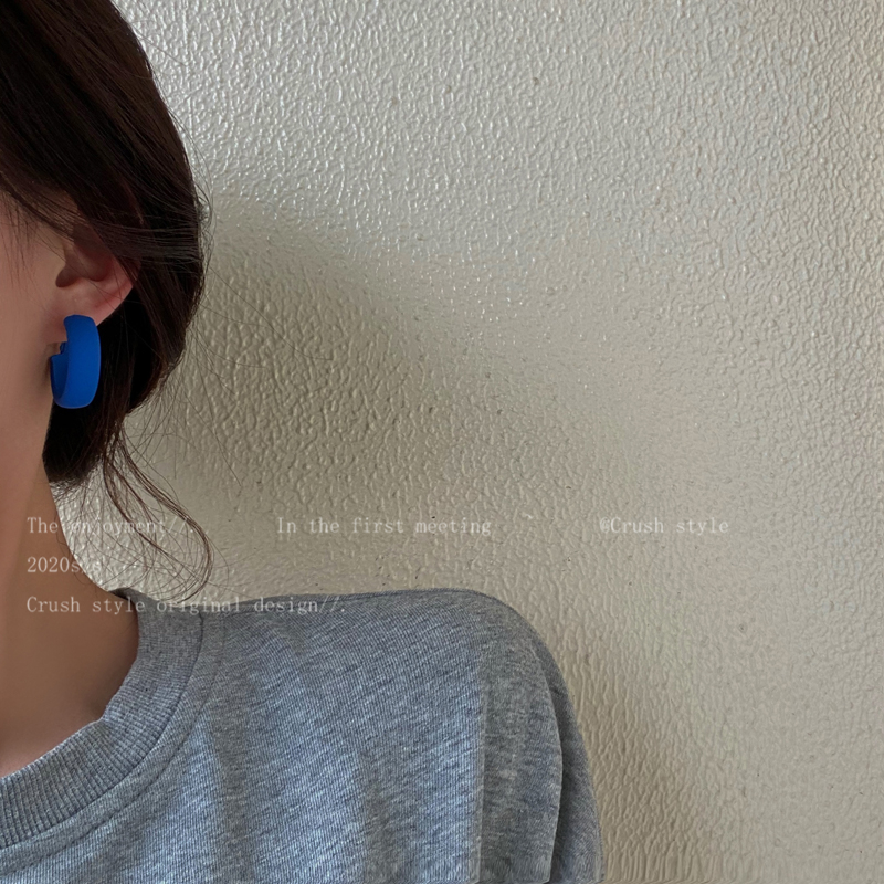 South Korea Retro Klein Blue Circle Earrings Woman 2021 New Tide Autumn Winter Fashion 100 Hitch Ear Pin