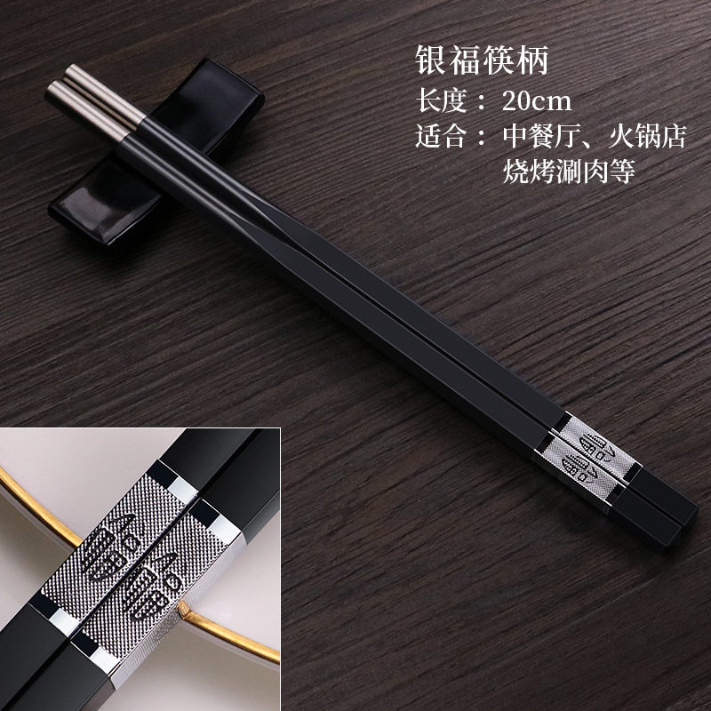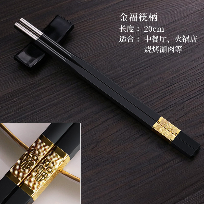 Jinfu chopsticks handle 10 pairs Silver blessing chopsticks handle 10 pairs Jinfu-alloy chopsticks 10 pairs 7cm coated paper packaging 50 pairs of chopstick heads 9cm bare chopsticks 50 pairs 10 9cm coated