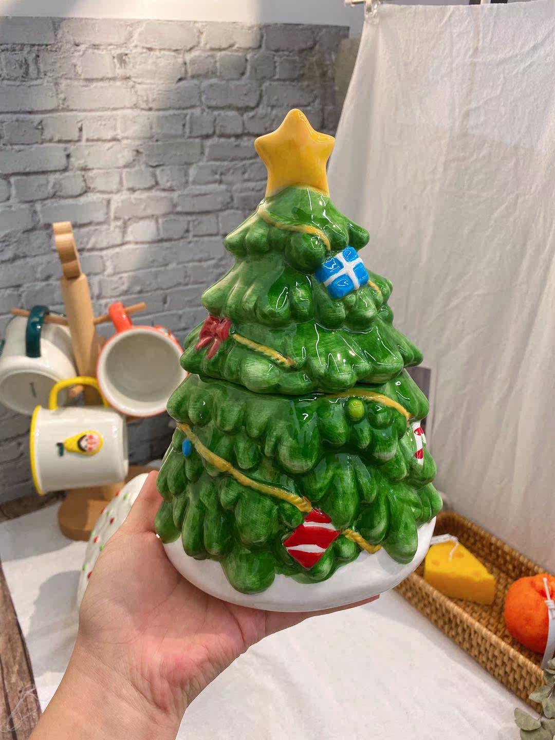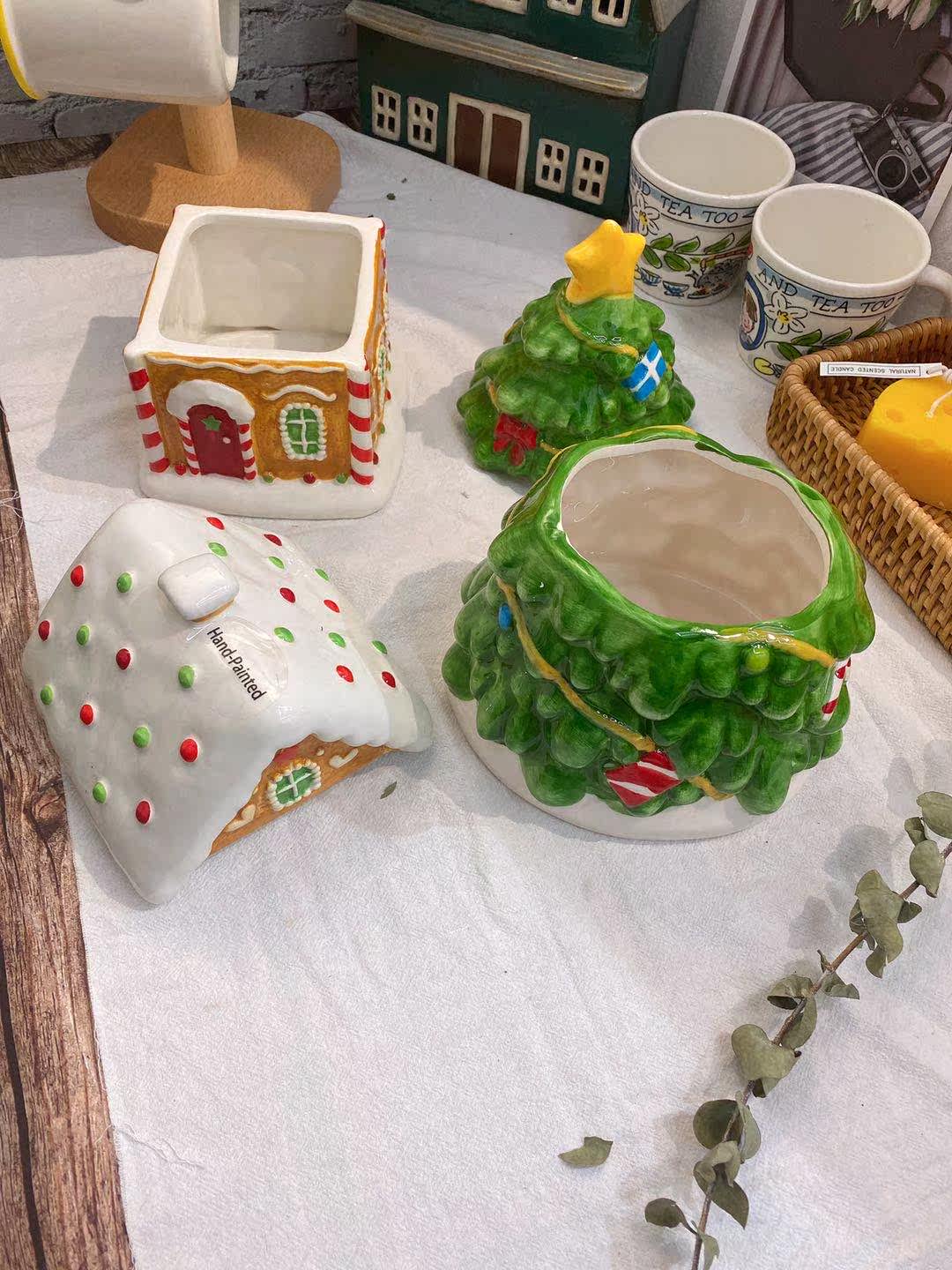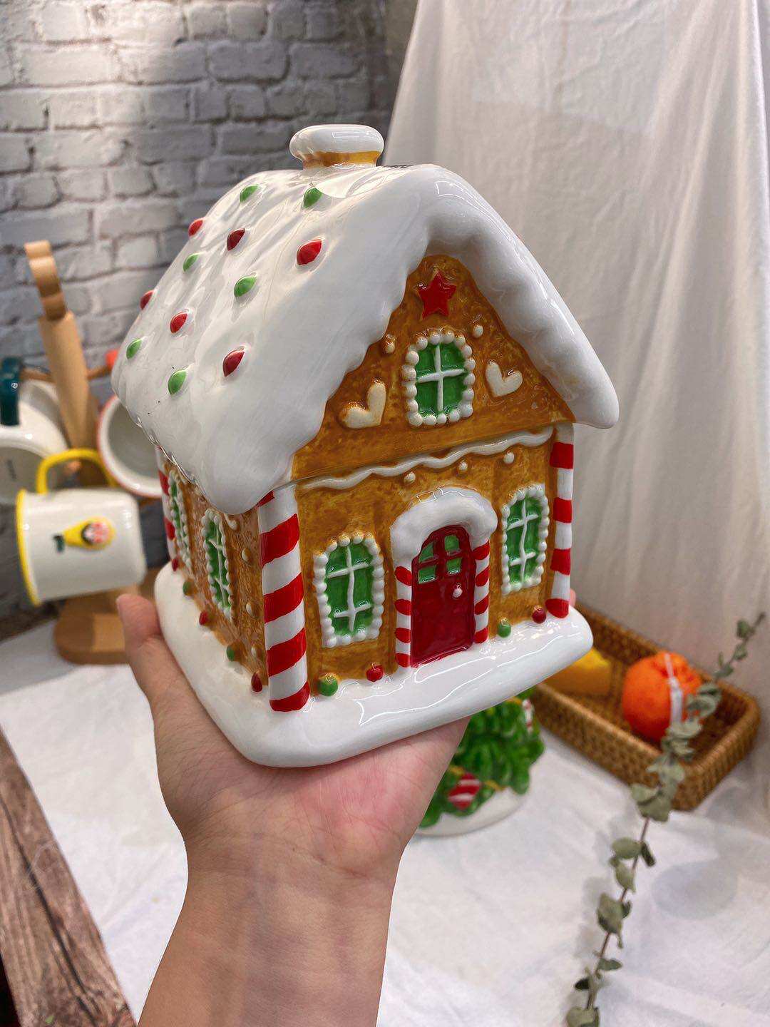Export foreign ceramic gingerbread house Christmas tree with lid jar