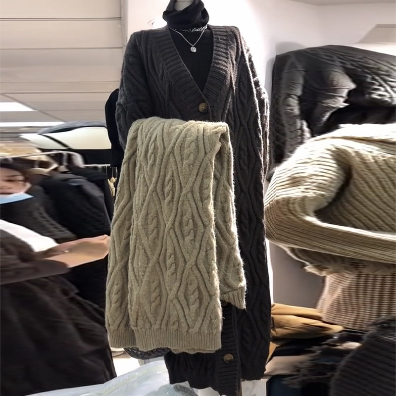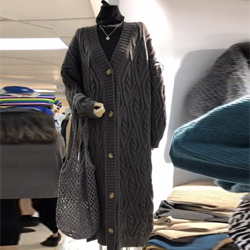 Long version twist sweater coat women's autumn and winter outer wear Korean style all-match lazy style loose thickened over-the-knee knitted cardigan