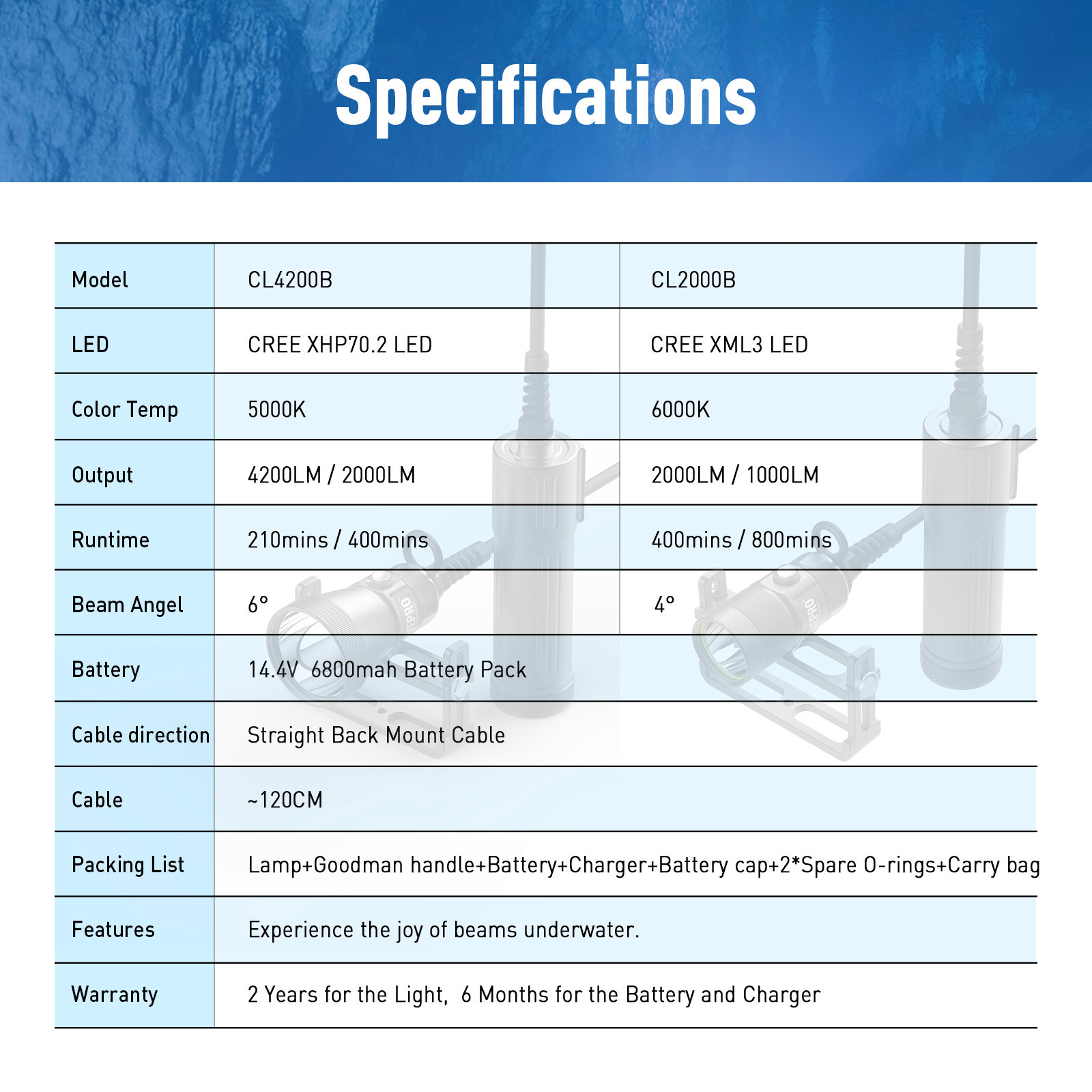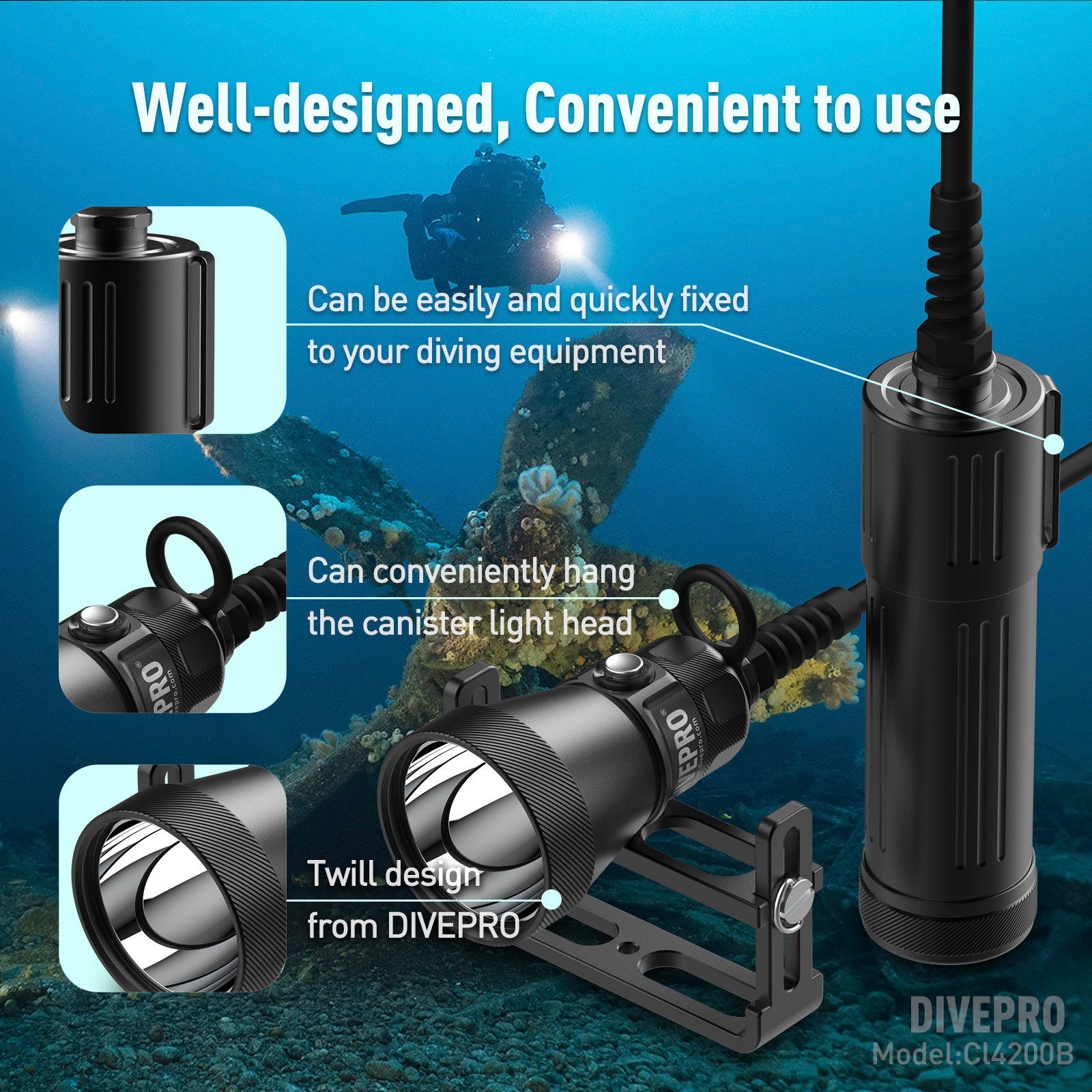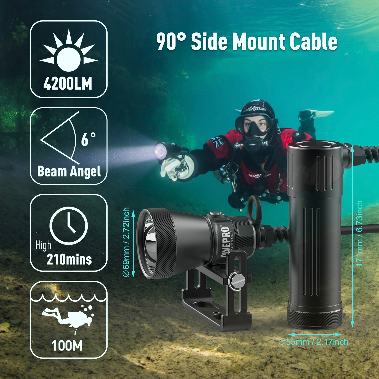 DIVEPRO CL4200LM scuba technical diving side-mounted back-mounted strong light split cave diving flashlight main light