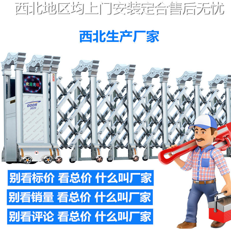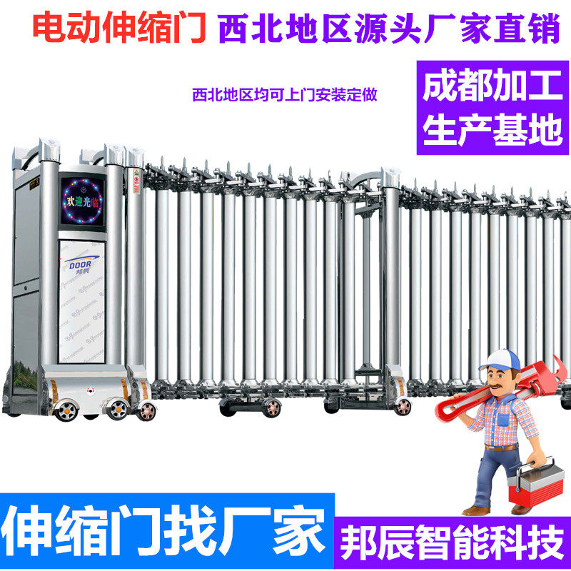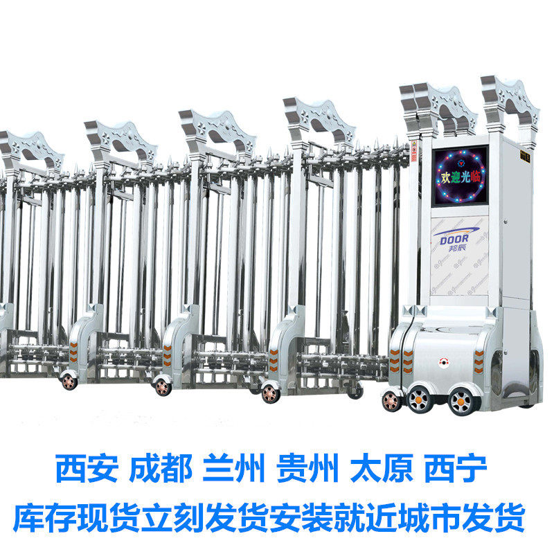 Chengdu stainless steel electric retractable door school remote control automatic large aluminum alloy construction site community folding construction site new