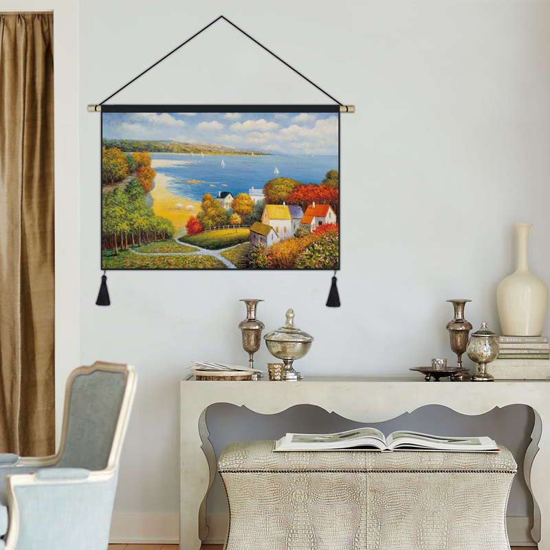 Landscape oil painting tapestry modern minimalist light luxury fabric hanging painting hanging cloth bedroom bedside sofa background decorative painting