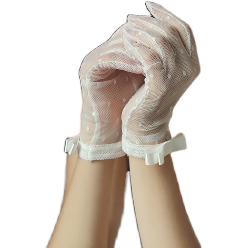 Wedding Dress Bridal Gloves Lace short Dot Mesh Yarn Small Butterfly Knots Elegant Minimalist Gown Gloves