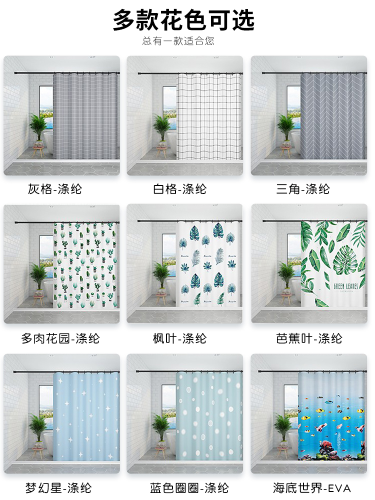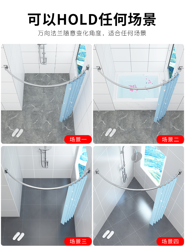 Special-shaped shower curtain set magnetic water retaining perforated shower curtain rod customized diamond-type bathroom dressing room waterproof partition window
