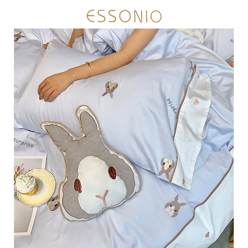 ESSONIO Red Female Four Piece Cotton Cotton 60 Princess Wind cute embroidery bedding