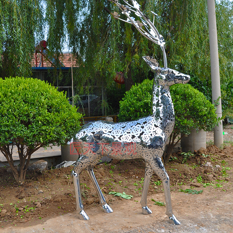 Stainless steel hollow deer animal sculpture large outdoor metal deer ornaments mirror landscape sketch customization