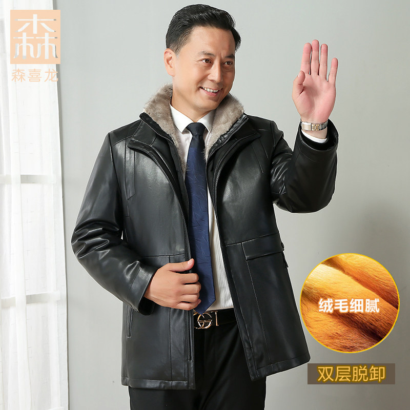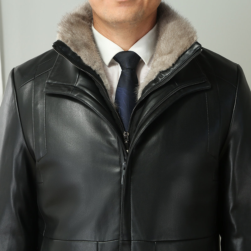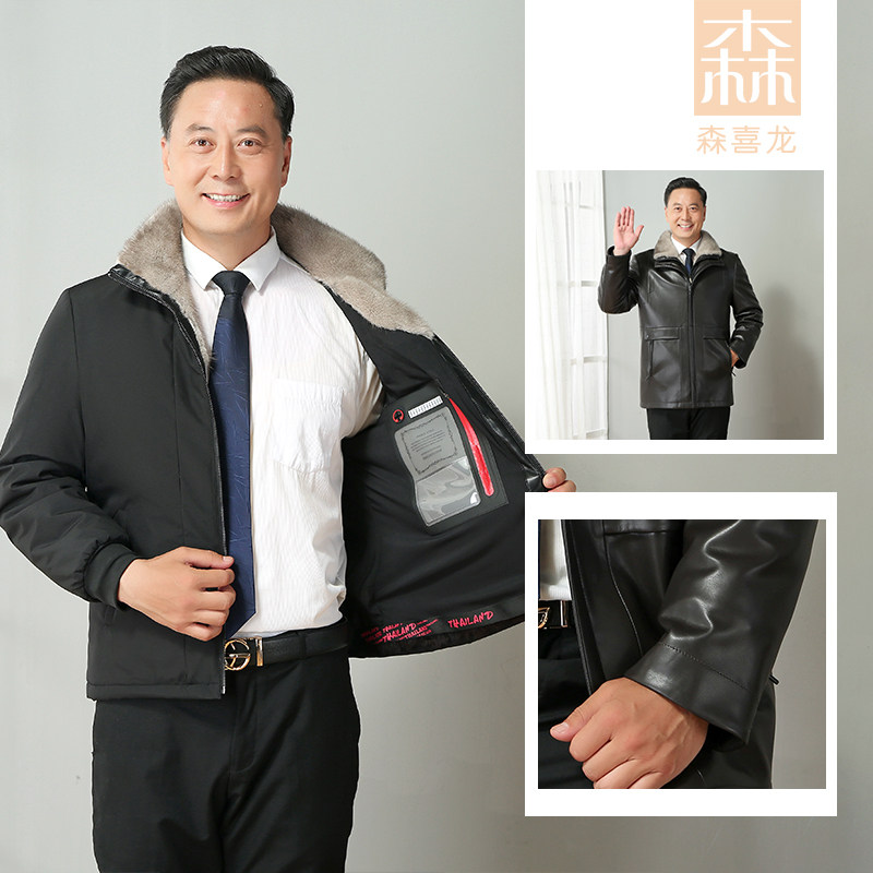 Middle-aged and elderly men's fur collar plus velvet thick winter father's fur Haining leather jacket mink velvet coat