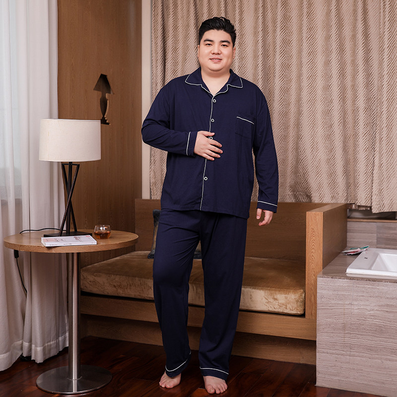 Sleepwear men's spring and autumn season pure cotton open flap jacket long sleeve suit plus fattening up yard and winter style fat sub full cotton home clothes