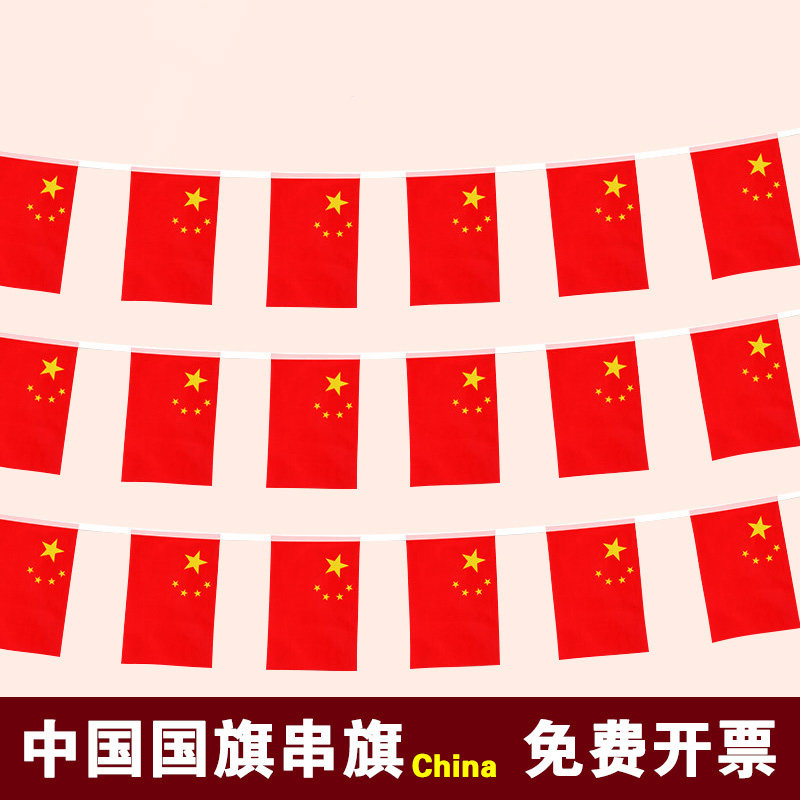 National flag string flag hanging flag bar shopping mall storefront street 56 national National Day decoration small bunting five-star red flag