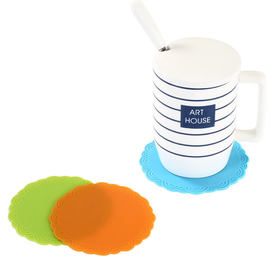 Silicone coaster creative thickened round placemat household insulation pad bowl pad waterproof and anti-scalding tea cup cushion 6 pieces