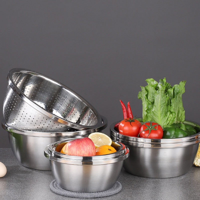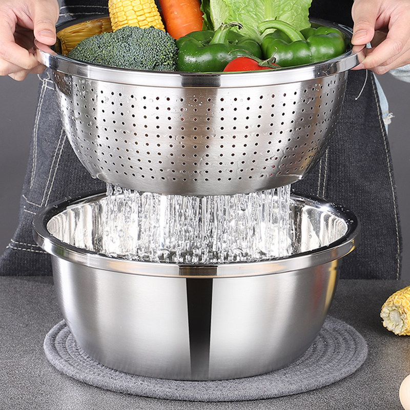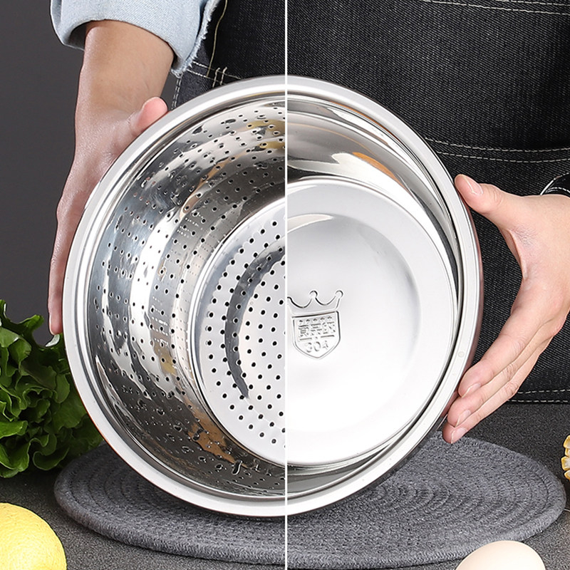 304 stainless steel basin sub-wash rice sieve naughty rice drain basket Home Kitchen Eggler Leaking Basin Wash Basin Suit