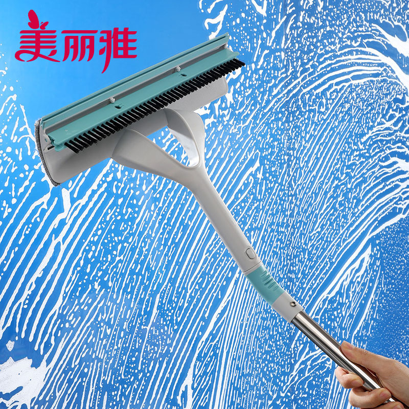 Beautiful ya purple butterfly glass window stainless steel rod scraper screen window cleaning brush long handle glass scraper home