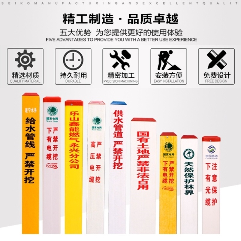 Power cable sign pile pvc glass fiber alarm pile optical cable gas water supply pipe communication security identification pile