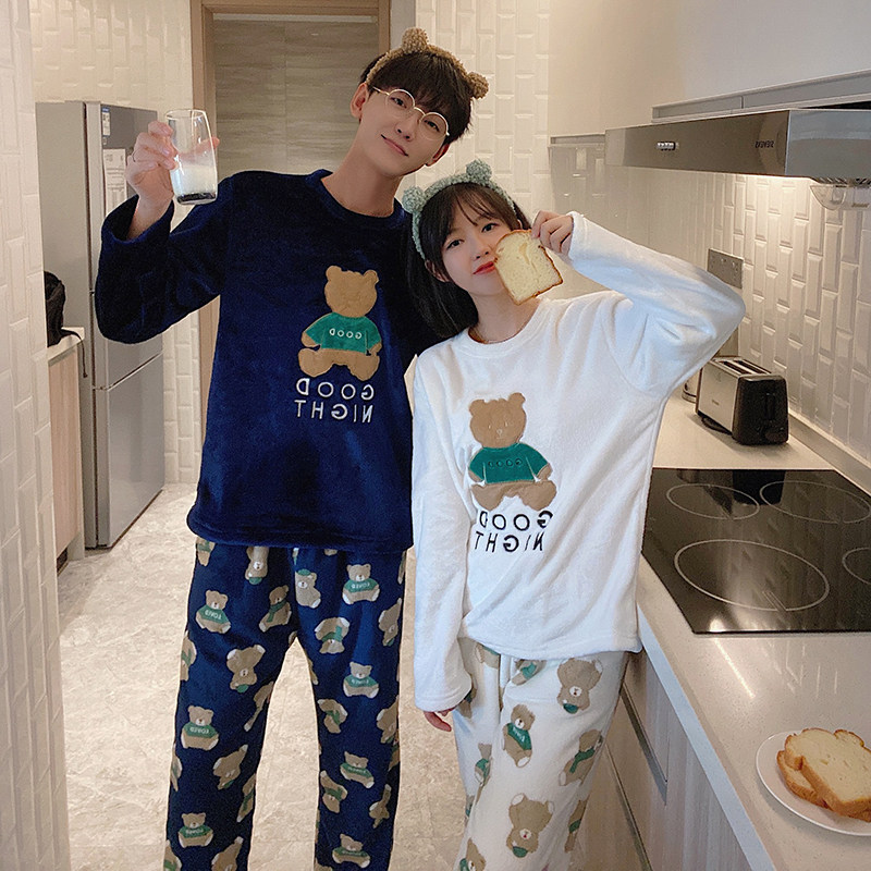Pullover bear bear coral velvet couple pajamas winter plus velvet thickening women's autumn and winter cute flannel men's home clothes