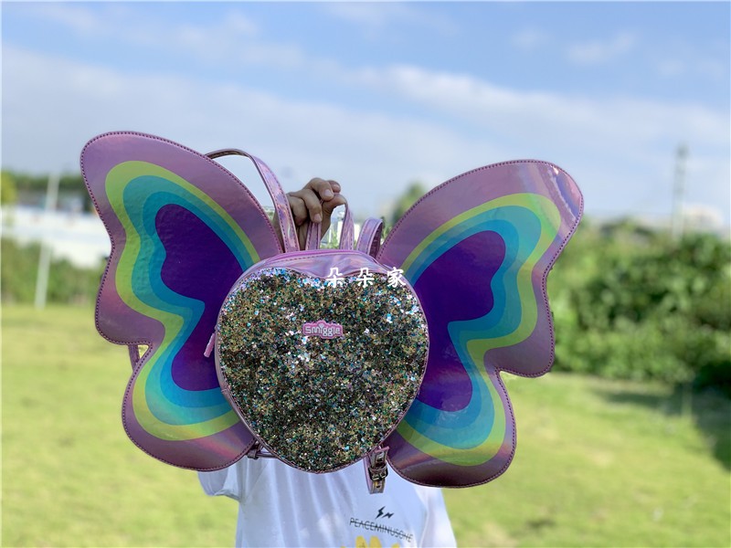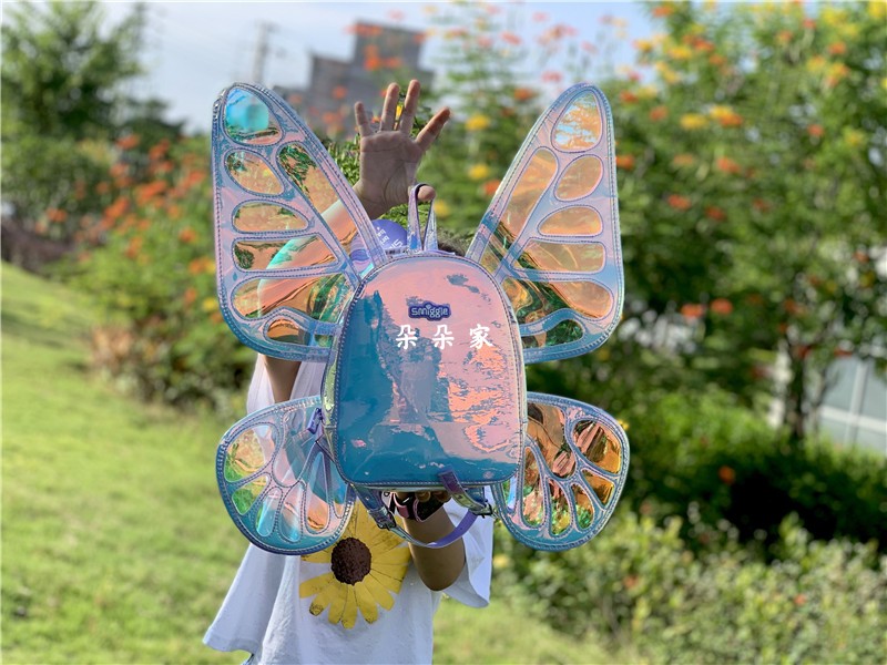 Spot Australia smiggle child student kindergarten double shoulder bag purple laser face bright face out of the bag