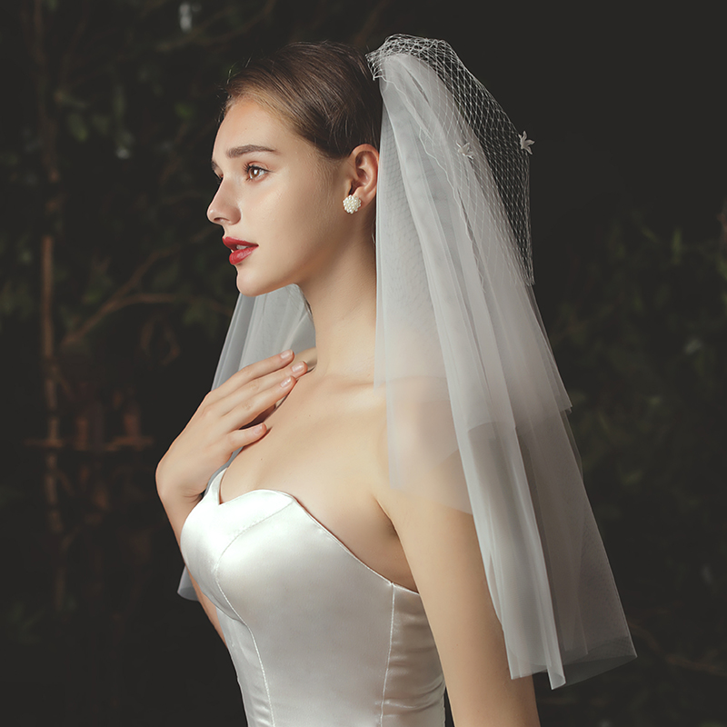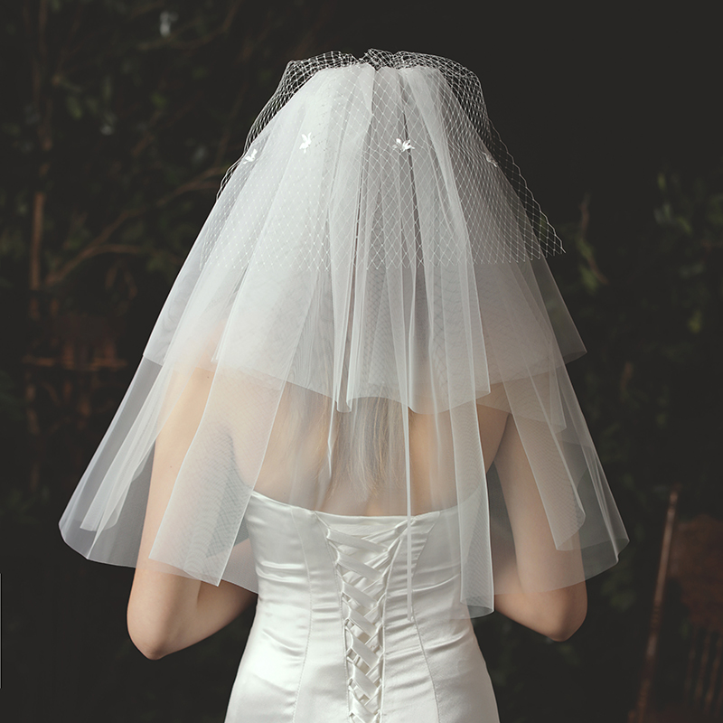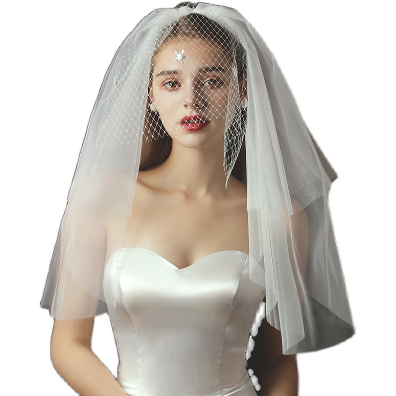 Han Style Head Yarn Bride Fluffy Multilayer Head Decoration Brief Styling Wedding Dresses Short head yarn