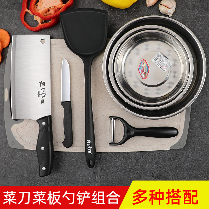 Wheat straw cutting cutting board kitchen knife two-in-one set baby non-staple food household mildew-proof non-stick pot kitchen utensils combination