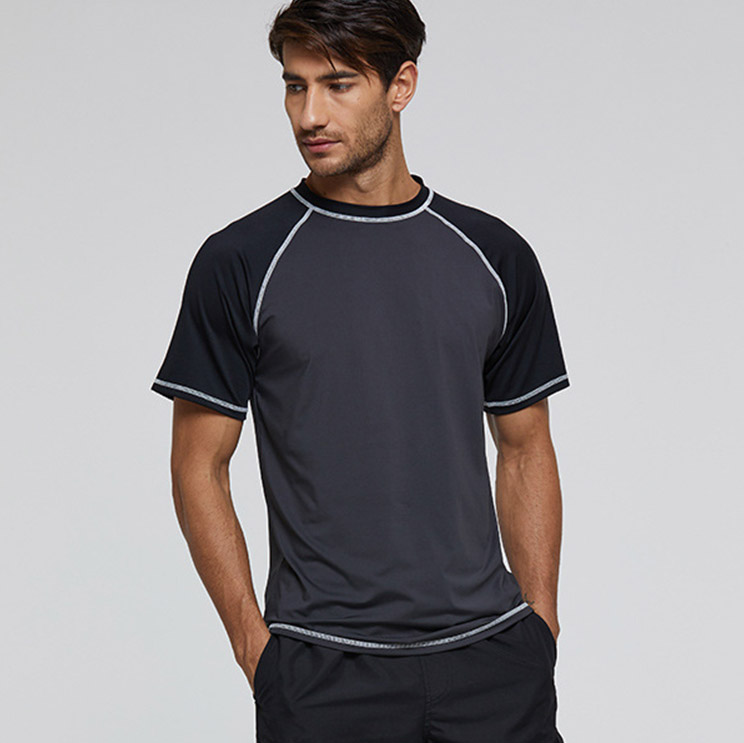 Men's swimsuit fat plus size fat two-piece short sleeve sunscreen quick-drying swimming top Loose casual swimsuit