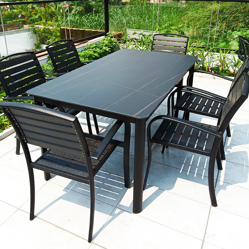 (special price promotion) PVC Corona 6 chair 160cm (special price promotion) PVC Corona 6 chair 160c plastic wood 4 chair 120cm coarse leg black gold rock plate table plastic wood 4 chair