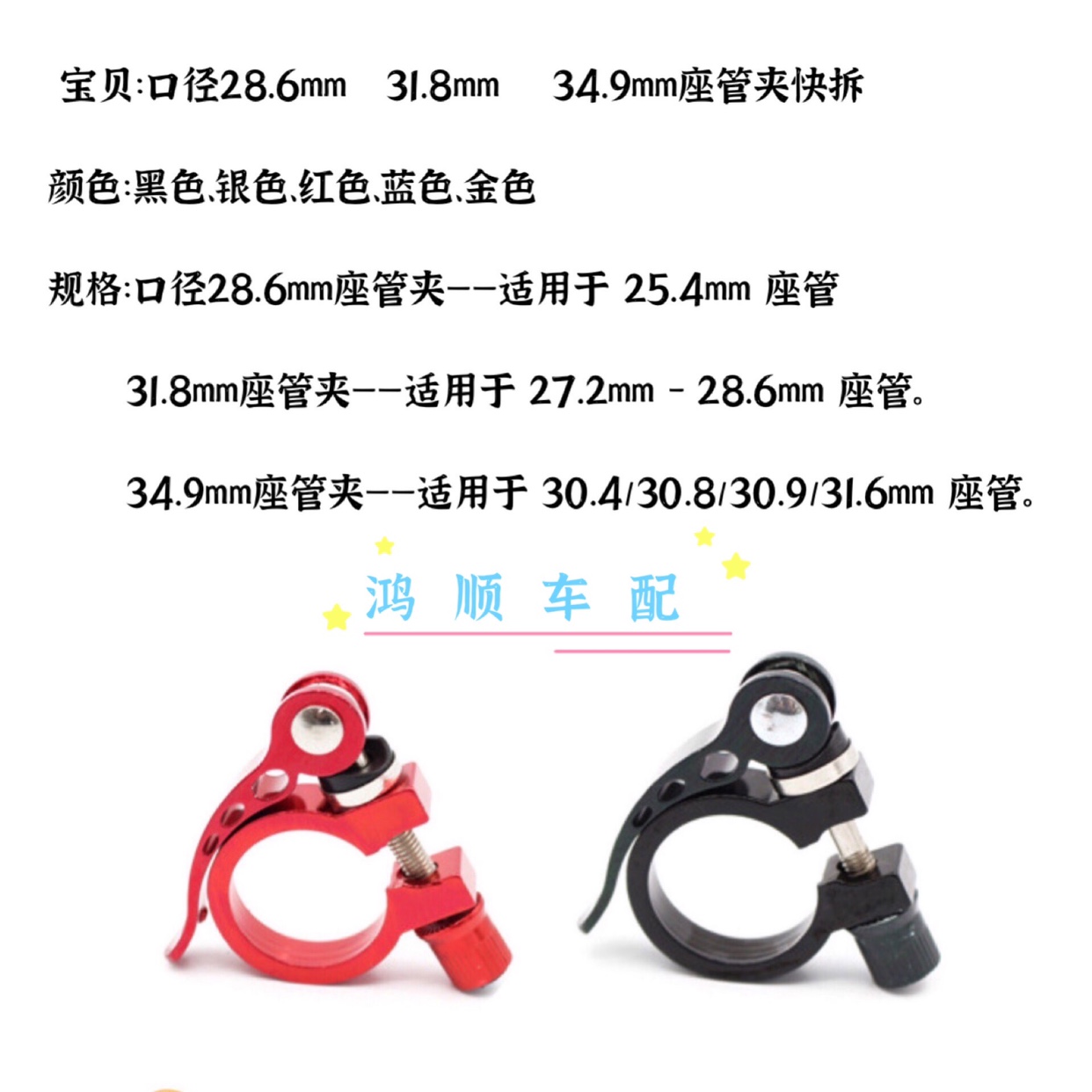 28 6mm seat tube clamp (blue) 28 6mm seat tube clamp (red) 28 6mm seat tube clamp (black) 28 6mm seat tube clamp (gold) 28 6mm seat tube