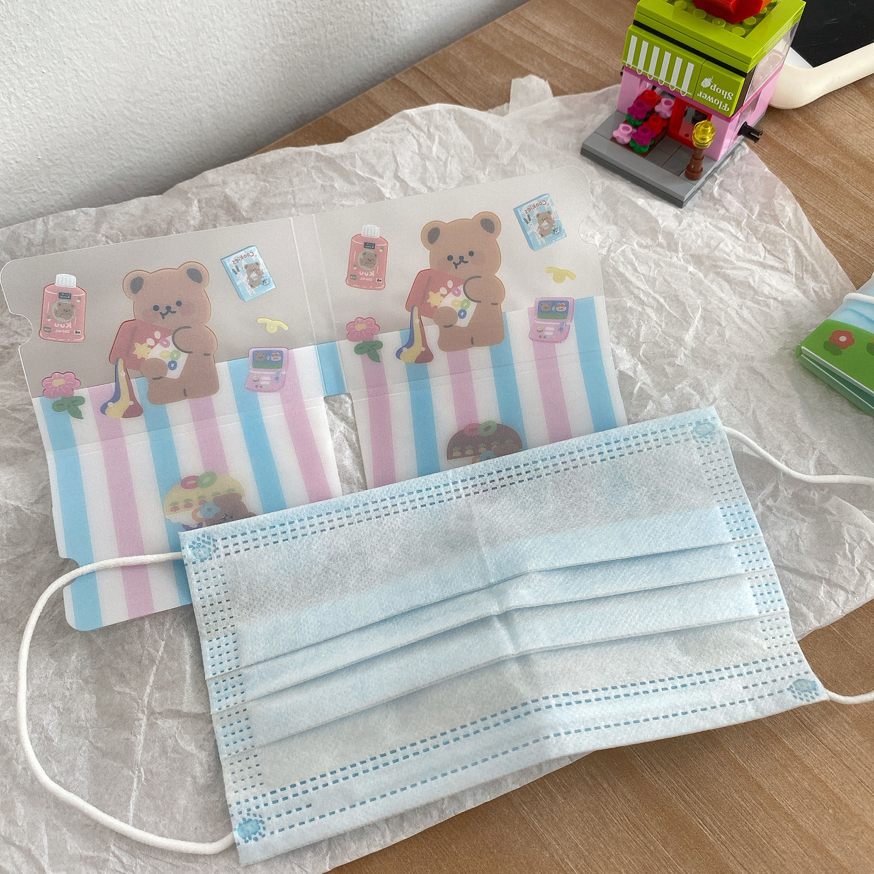 South Korean ins and dust mask containing clip portable folding and small storage clip mask box cartoon can love woman
