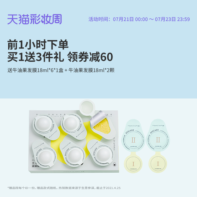 (Liluxiu the same)Three valley avocado hair mask to improve frizz moisturizing non-steaming smooth and supple 18ml*12
