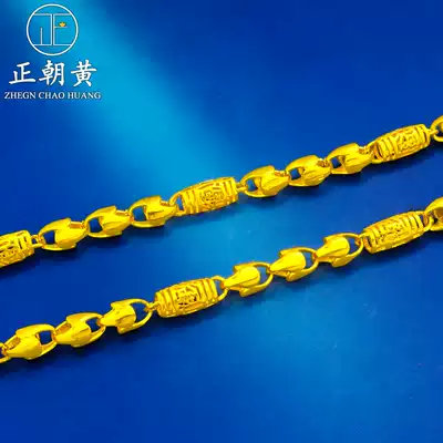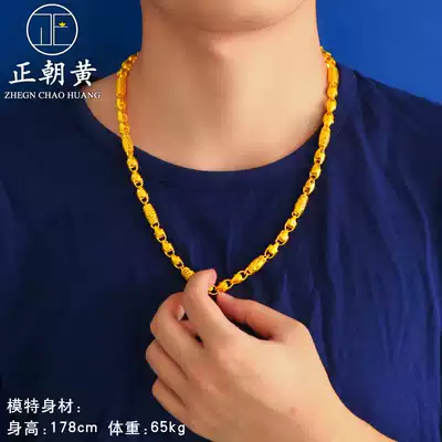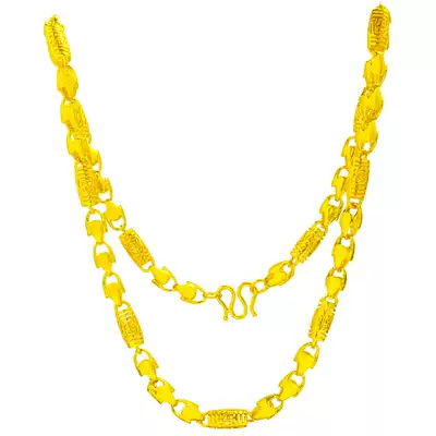 Simulation gold necklace male boss big gold chain hollow bamboo chain chain gilded gilded glossy beads neck does not fade for a long time