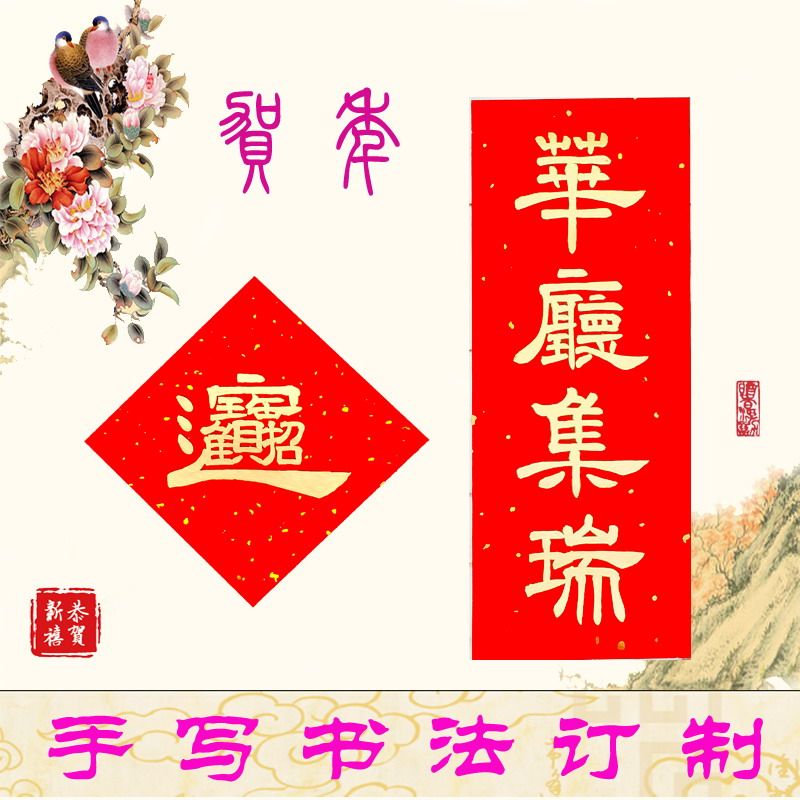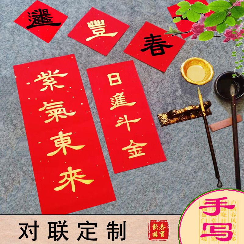 Handwritten little couplets for small doors with custom fu characters happy words New residence for marriage and wedding Jo relocating business for business couplets