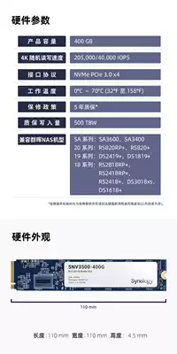 Lifetime Technical Support Synology Enterprise Class M 2 NVMe SSD SNV3500-400G 800G Solid State Drive for DS1618