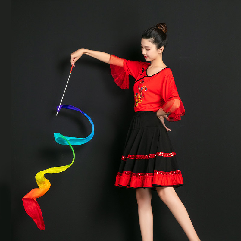 Real Silk Colourful Silk Ribbon dance Long silk colourful Transition Colourful Silk Dance Rainbow Silk with Customizable Props