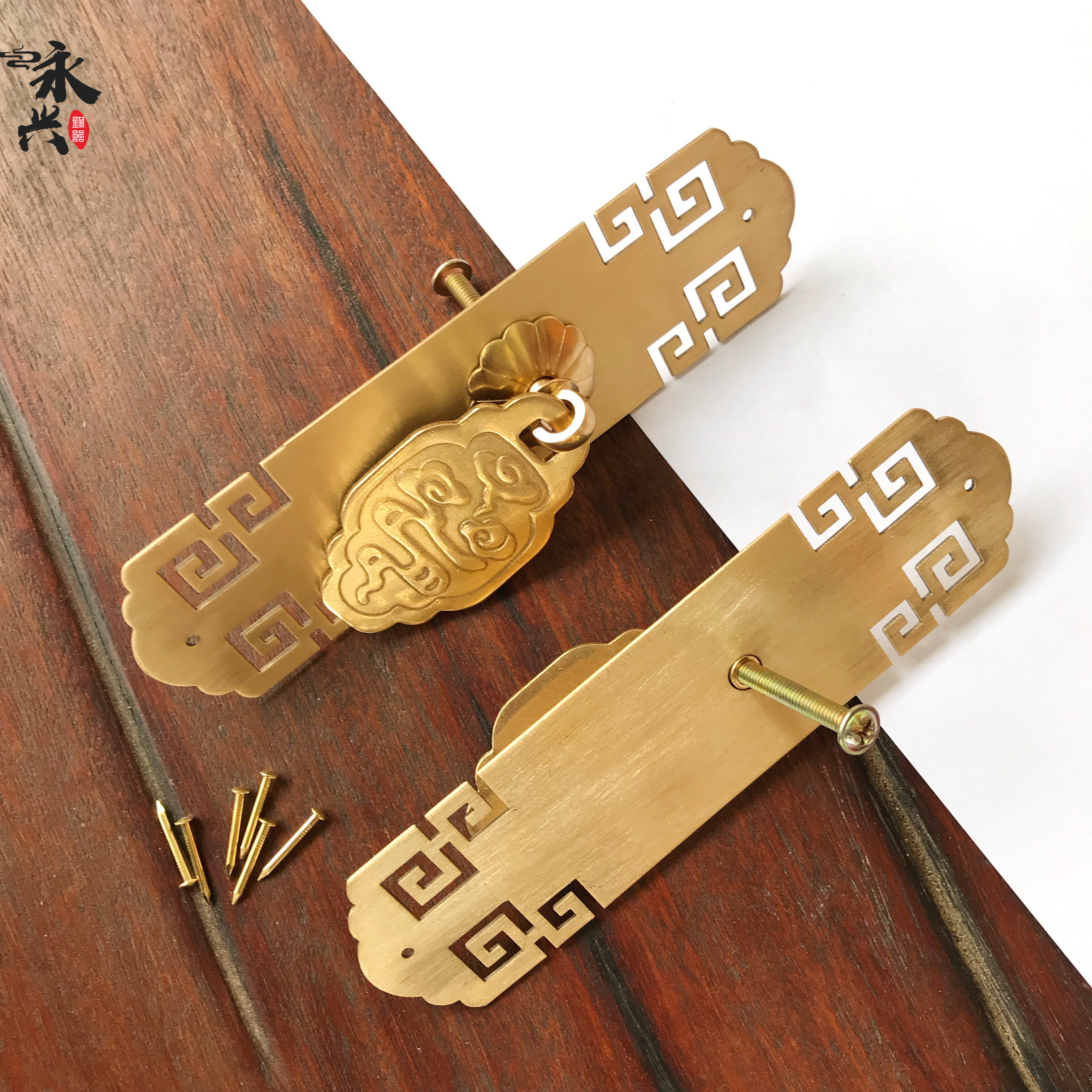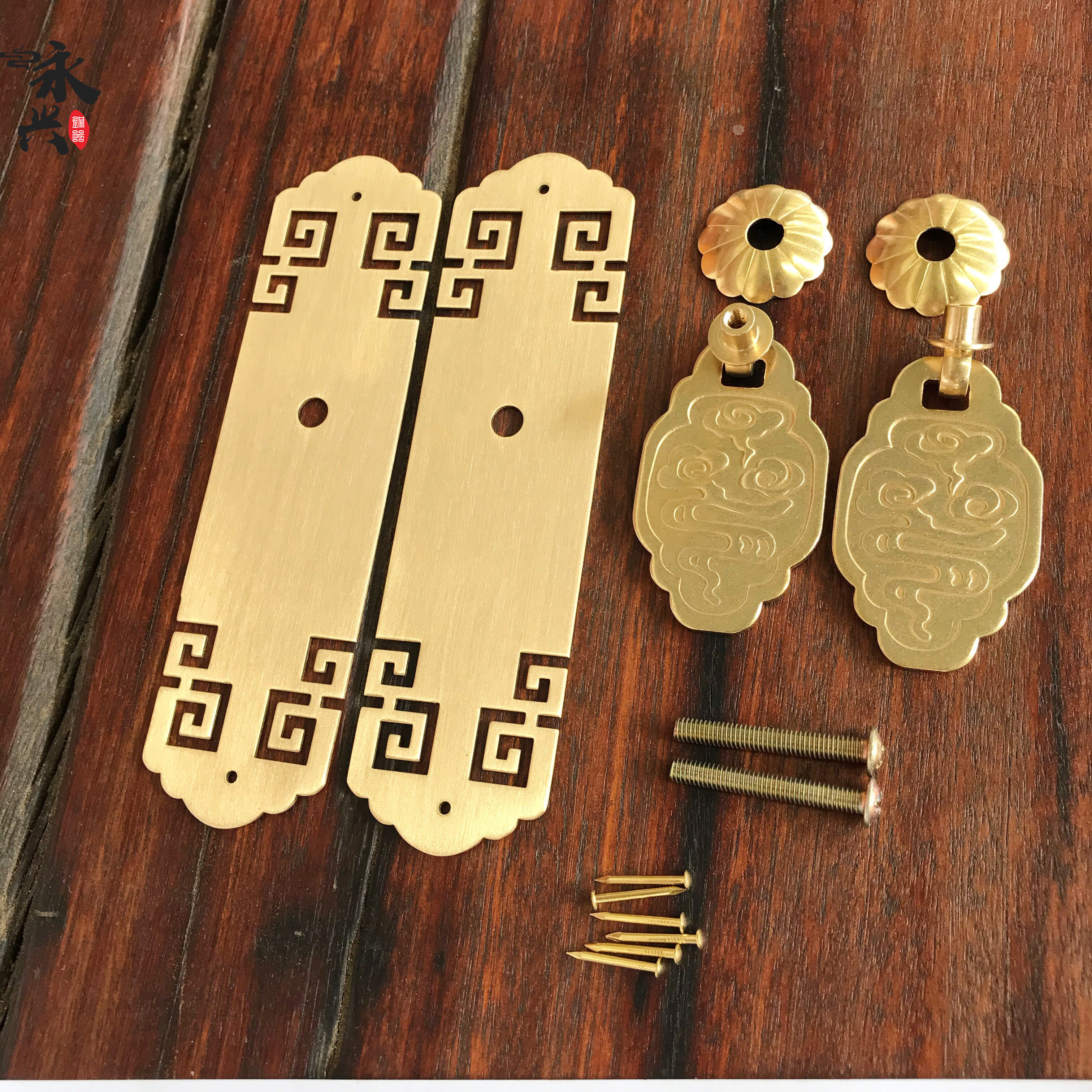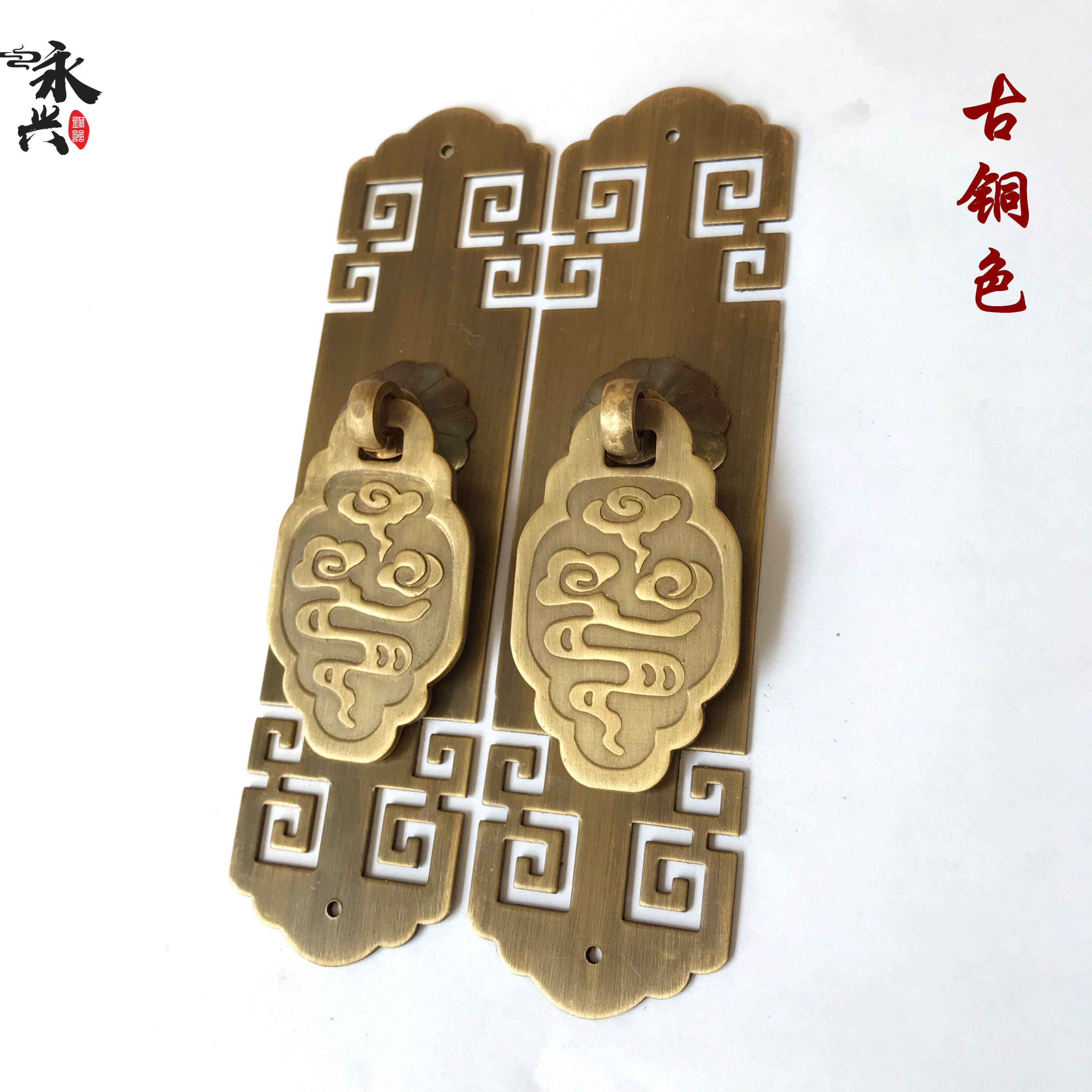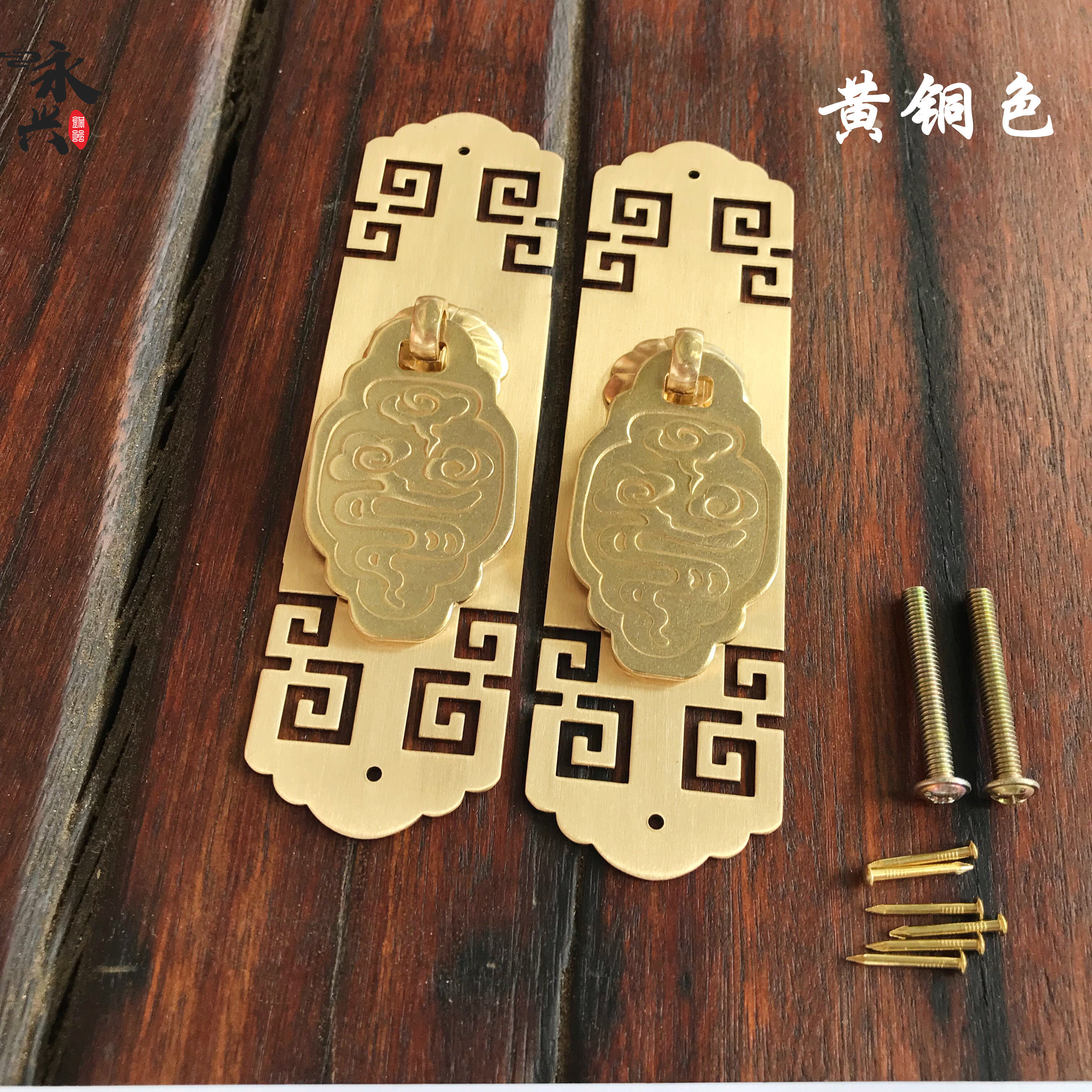 Chinese Ming clear pure copper back tattooed handle clothes whole closet cabinet door single-hole straight strip Xiangyun handle imitation ancient furniture 5 gold accessories