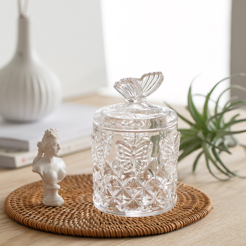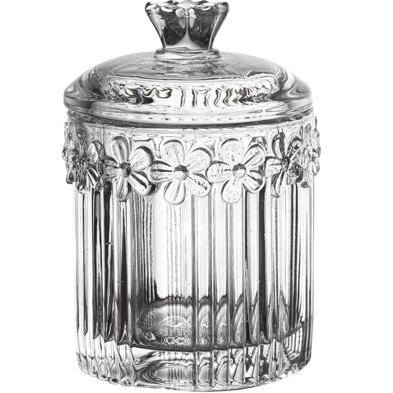 French glass embossed sugar tank cotton swab storage jar dry can can crystal jewelry ins light luxury storage toothpick box