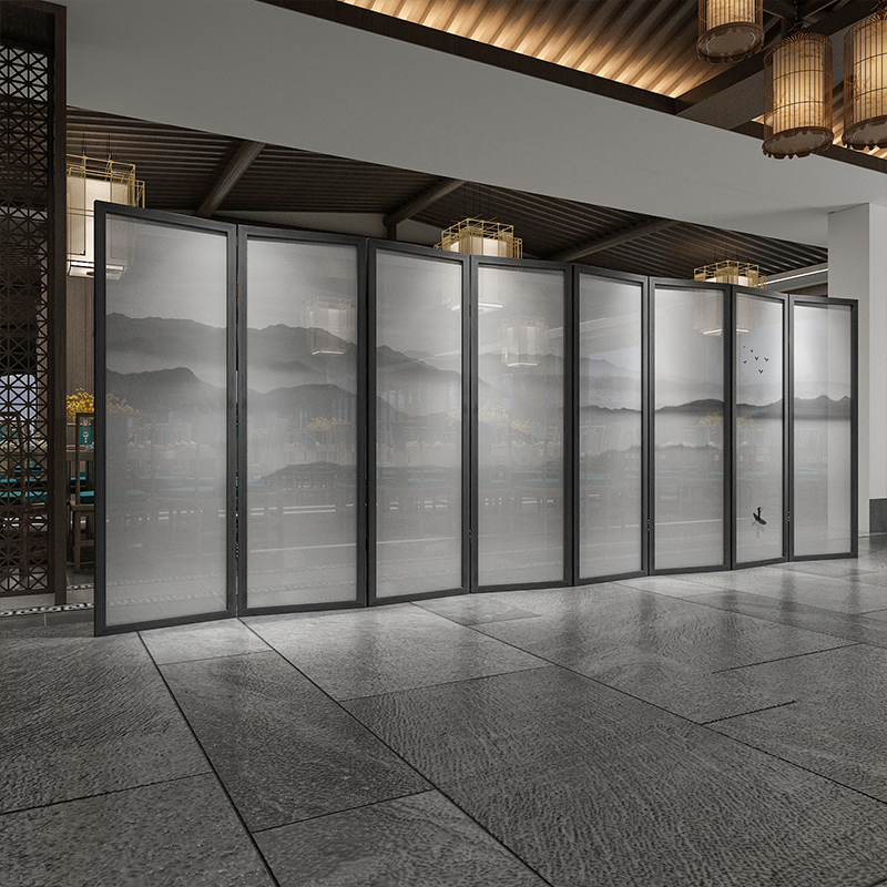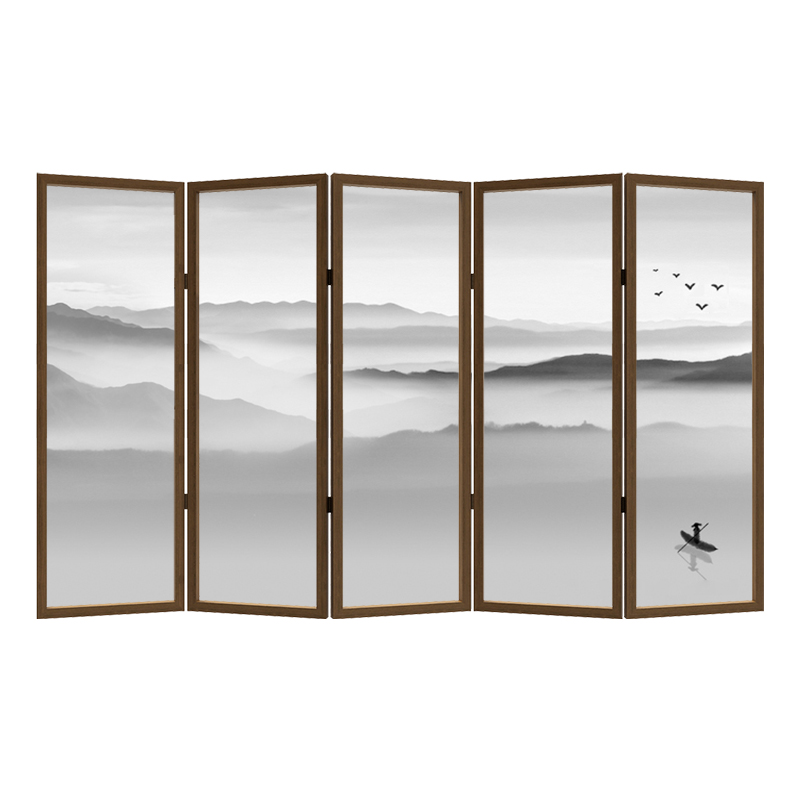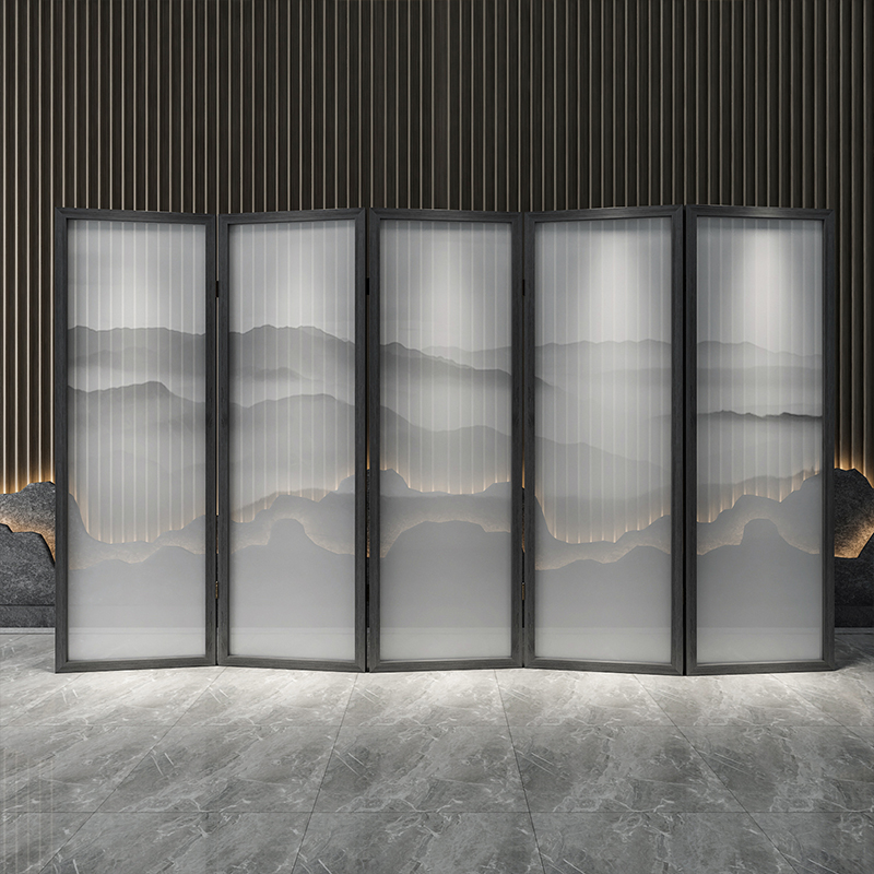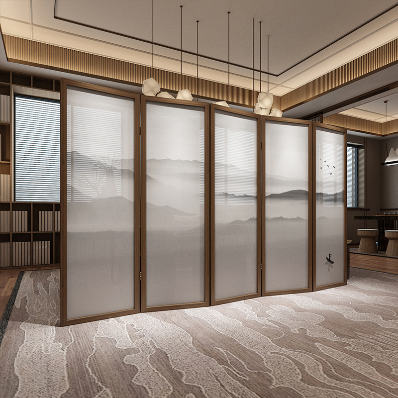 New Chinese mountain folding screen partition living room simple mobile blocking wall solid wooden methane bedroom hotel folding screen