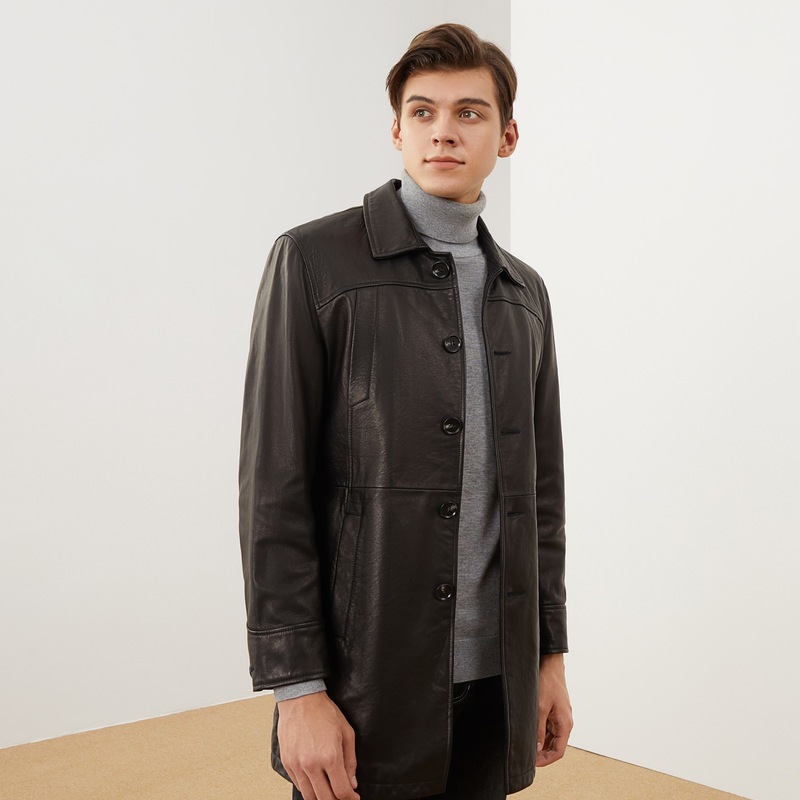 Seven brand men's autumn and winter new retro men's leather coat trend youth lapel medium and long version of the coat
